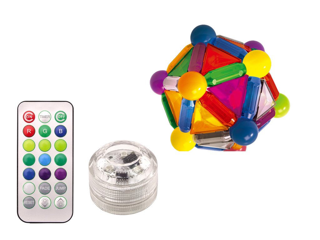 Del seta je tudi lučka za osvetlitev struktur, ki jo je mogoče upravljati s priloženim daljinskim upravljalnikom. Otroci lahko tako spreminjajo barve razsvetljevanja, kar še dodatno obogati in popestri njihovo igro ter spodbuja nadaljnje raziskovanje in ustvarjanje.