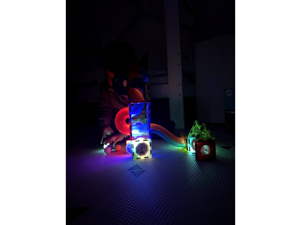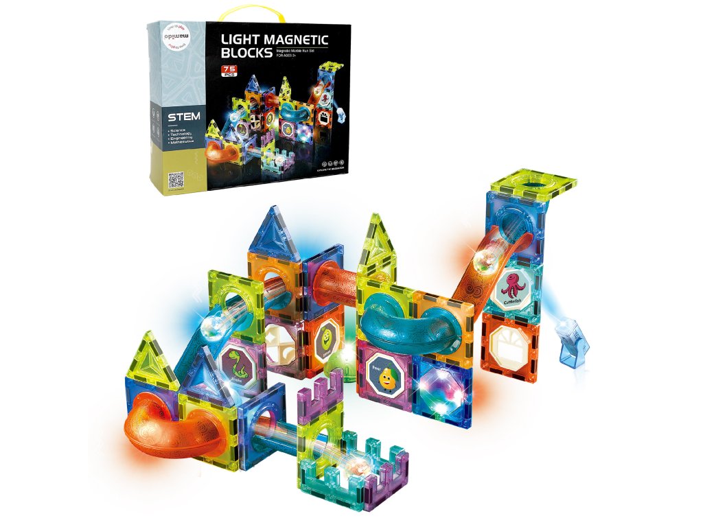 Magnetne svetleče kroglične kocke so odlična izobraževalna igrača, ki razvija otroško ustvarjalnost, uči potrpežljivosti in osredotočenosti. V priloženi brošuri so podani primeri postavitev. Nekateri elementi imajo vgrajeno osvetlitev, da igrača izgleda domiselno.
