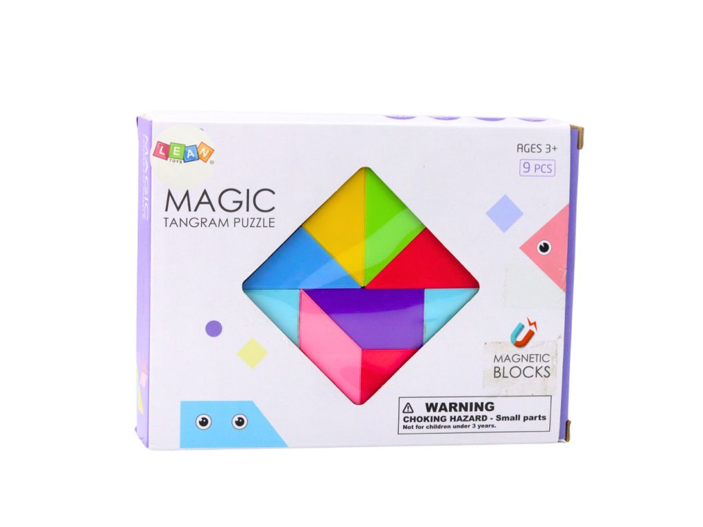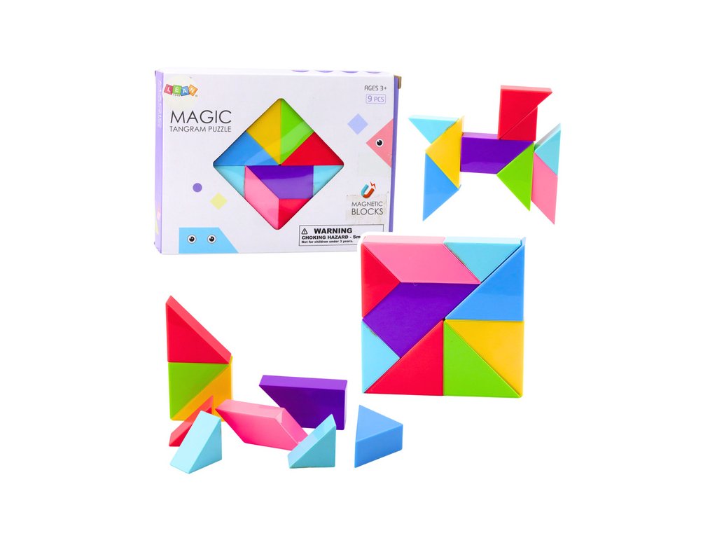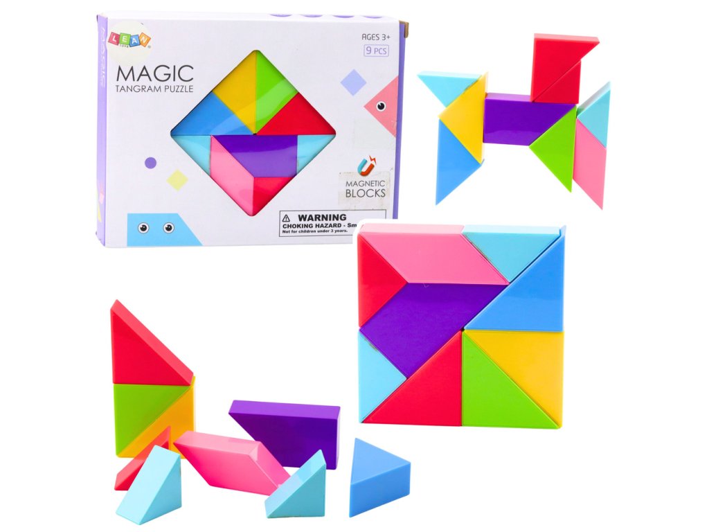 Magnetne tangram kocke so ustvarjalna izobraževalna igrača, ki spodbuja domišljijo in razvija ročne spretnosti. Komplet vsebuje 9 pisanih kosov , ki jih je mogoče povezati v različne vzorce in oblike ter ustvariti edinstvene kompozicije. Zahvaljujoč močnim magnetom so strukture stabilne in enostavne za sestavljanje, kar spodbuja dolgotrajno igro in eksperimentiranje.