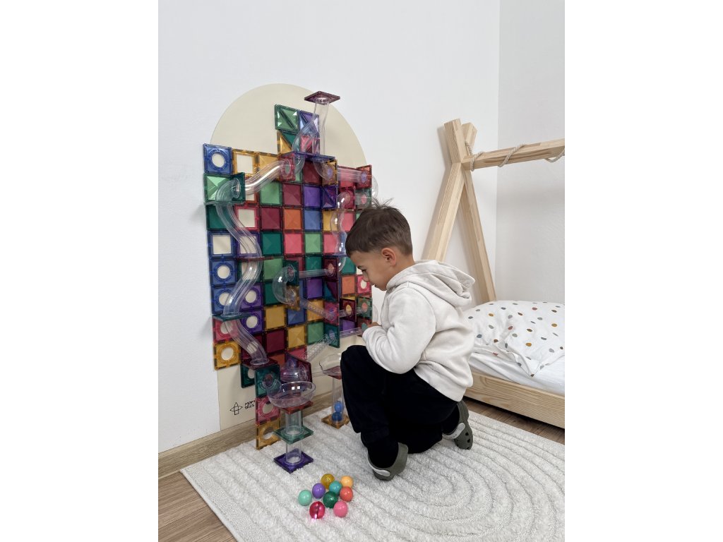Magnetna tapeta Mamido Ploščice bo otrokom prinesla še več zabave, ustvarjanja in učenja zahvaljujoč magnetni moči in enostavni namestitvi. Preprosto jo prilepite na gladko steno in v trenutku bo ustvarjen interaktivni prostor za magnetke, risanje s kredo, slikanje z pralnim barvami in pisanje s pisalom za table.