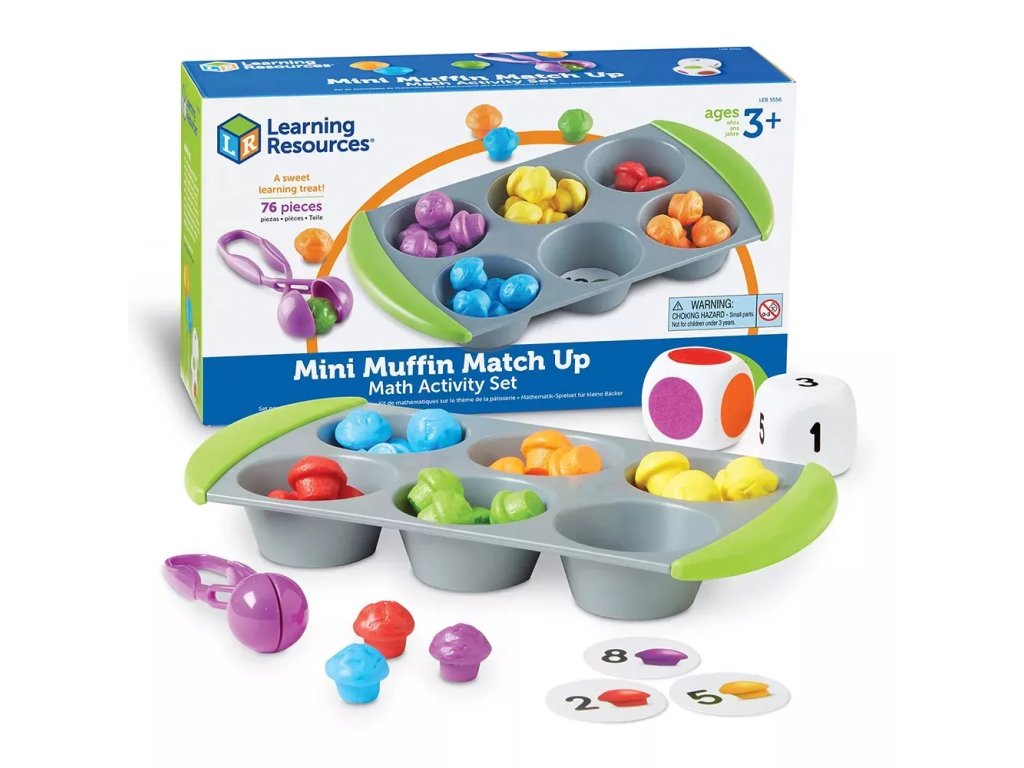 Komplet vsebuje različne vložke za razvrščanje, ki jih lahko vstavite na dno modelčkov za muffine in glede na njih izbirate ustrezne mini muffine. Igre je mogoče prilagajati glede na raven spretnosti otrok, z uporabo pincete pa se hkrati uri prijem in koordinacija prstov.
