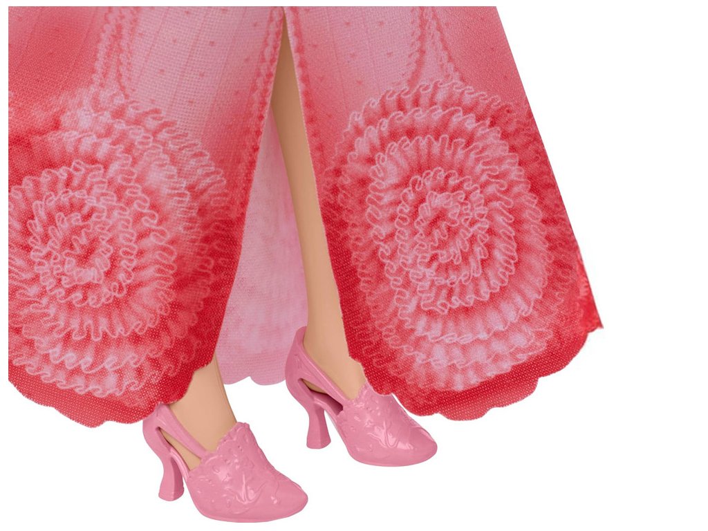 Glinda má na sobě rozkošné růžové ombré šaty z měkkého materiálu, které lze svléknout a převléknout. Šaty bez rukávů, zdobené jemnými detaily, dokonale odrážejí její okouzlující styl.