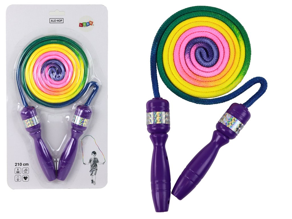 Mavrična kolebnica z vijoličnimi ročaji za otroke