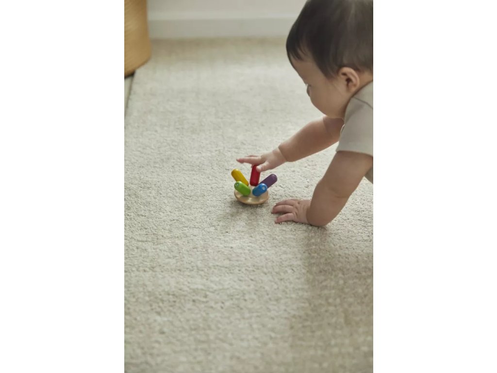 Majhna lesena meduza, zasnovana tako, da se udobno prilega otroški dlani. Barviti lovke privlačijo otroke k manipulaciji in spodbujajo igro čutil.