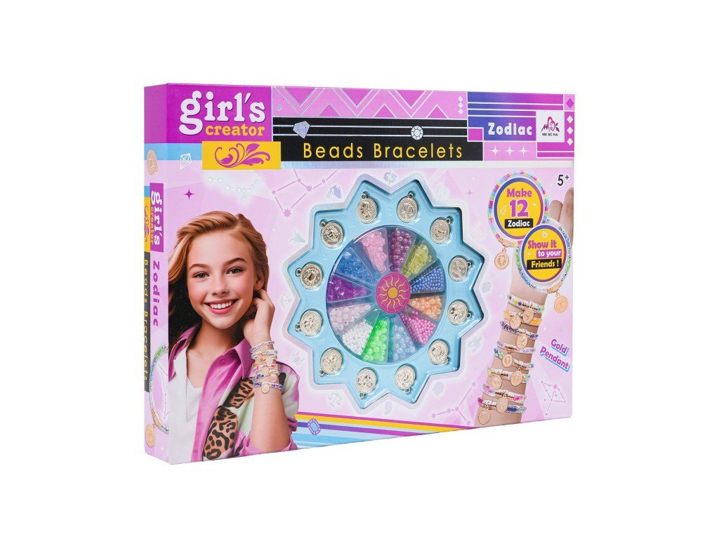 Ustvarjalni komplet za izdelavo zapestnic za otroke od petega leta starosti. Bogato opremljen komplet je izdelan iz najkakovostnejših materialov, ki so varni za otroke. Komplet bo odlično orodje za razvoj domišljije in ustvarjalnega mišljenja. Nakit, ki ga je izdelal otrok, bo edinstven in neponovljiv. Komplet vsebuje prozorne cevke za izdelavo zapestnic, pisane perlice in obeske z znaki zodiaka.