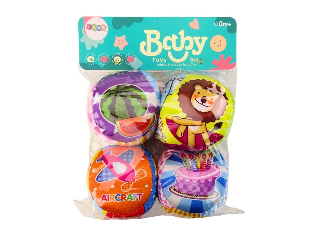 Set 4 mehkih žogic za otroke je edukativna in interaktivna igrača, ki združuje učenje in zabavo. Vsaka žogica v setu ima edinstvene motive, ki spodbujajo učenje skozi igro. Barvite ilustracije živalic, sadja in sladkarij pomagajo otrokom prepoznavati različne predmete. Žogica z risbami osnovnih prevoznih sredstev, vsaka označena v angleščini, vnaša otroke v svet tujega jezika.