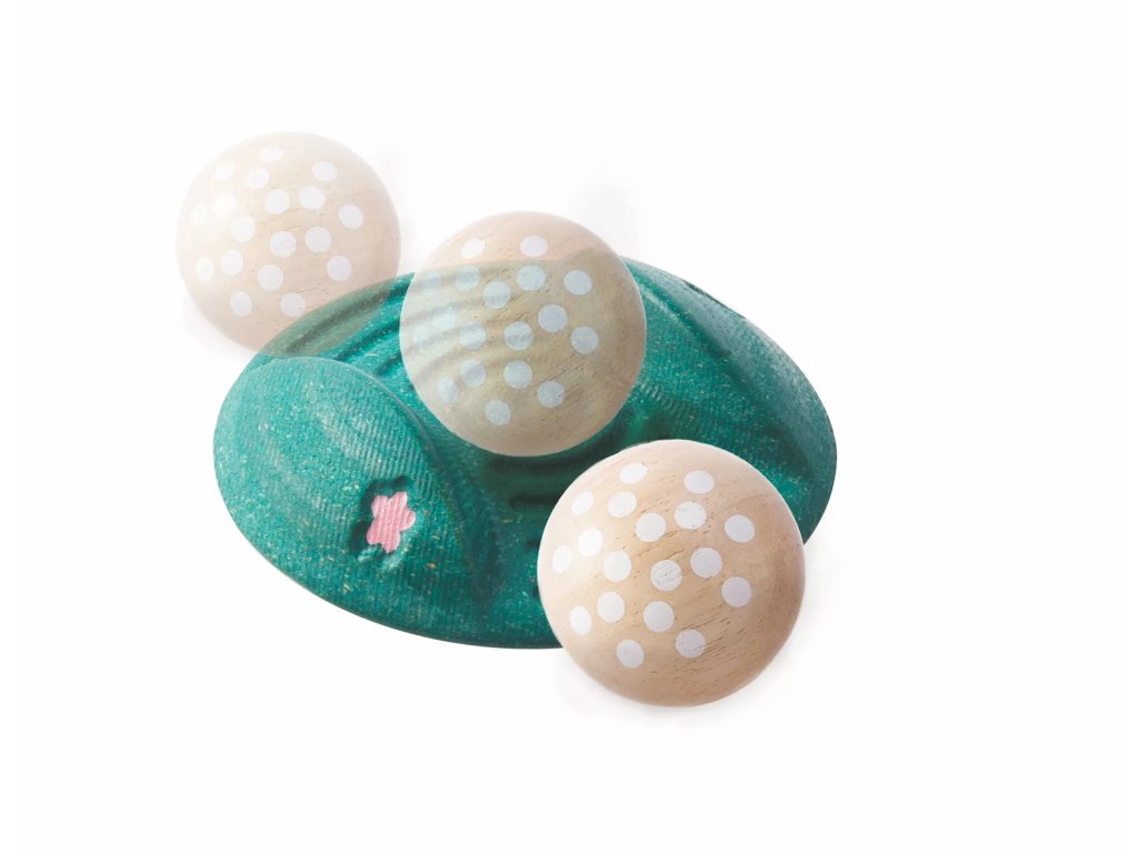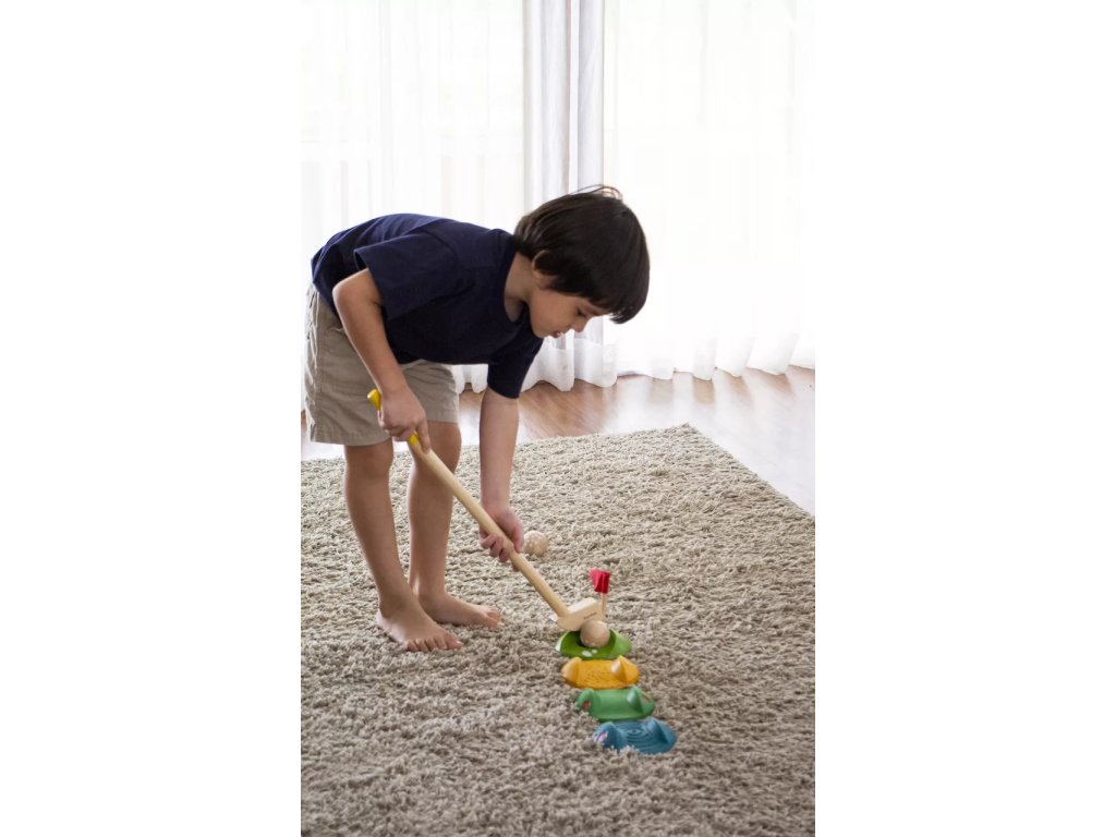 Igrajte golf v igralnici ali na dvorišču. Ta lesena igra je primerna za majhne in večje otroke, med igro pa spodbuja koordinacijo, potrpežljivost in socialno zaznavanje.