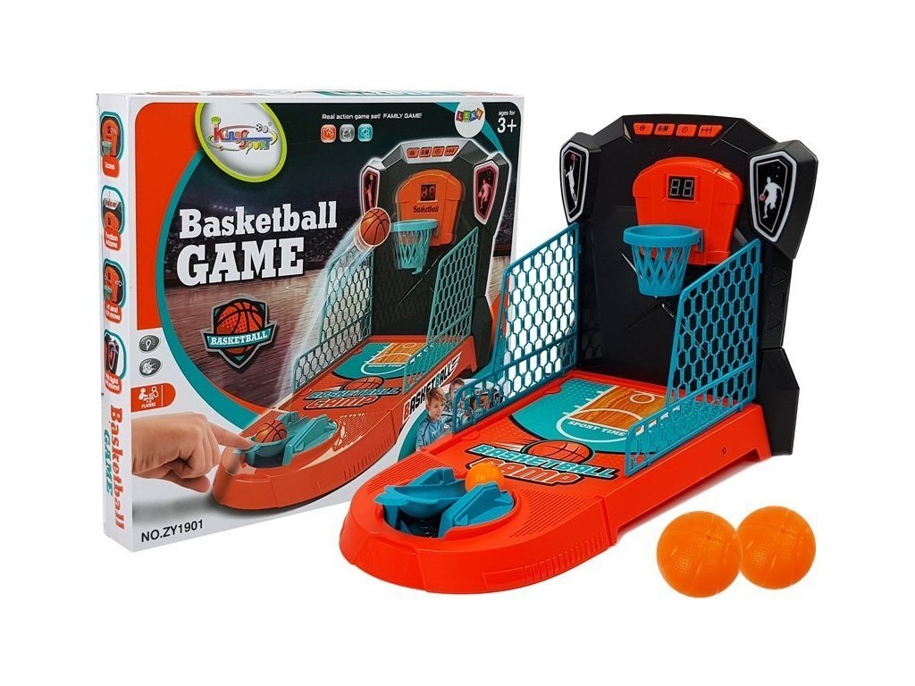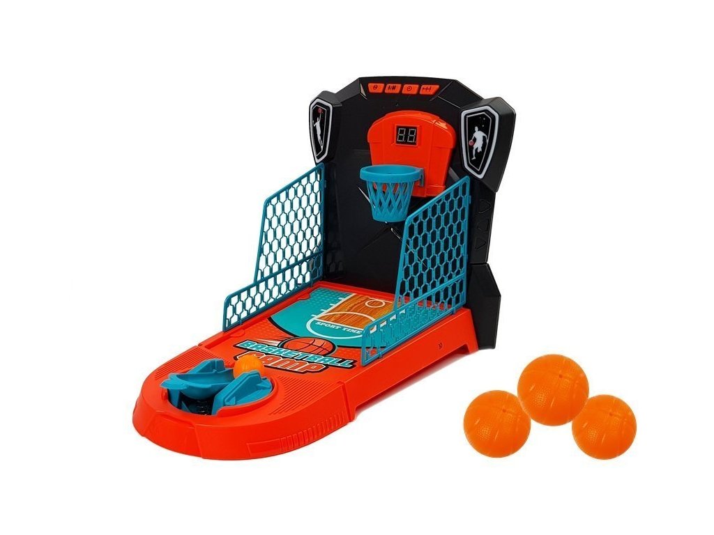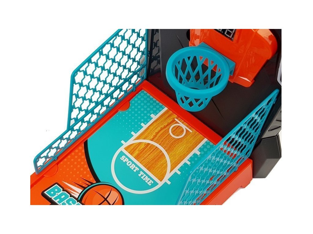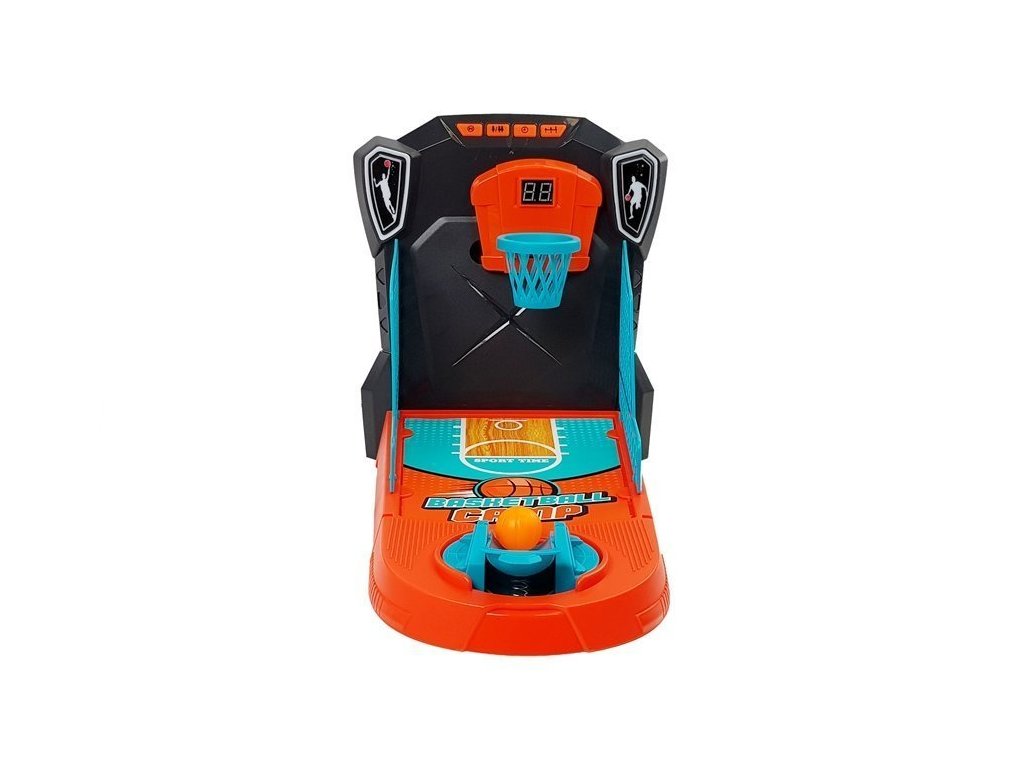 Popolna igra za vso družino. Mini košarkarska družabna igra vsebuje zvočne in svetlobne učinke. Dovolj je, da pritrdite žogico na lansirno napravo in merite na koš. Po zadetku v koš se na zaslonu prištejejo točke.