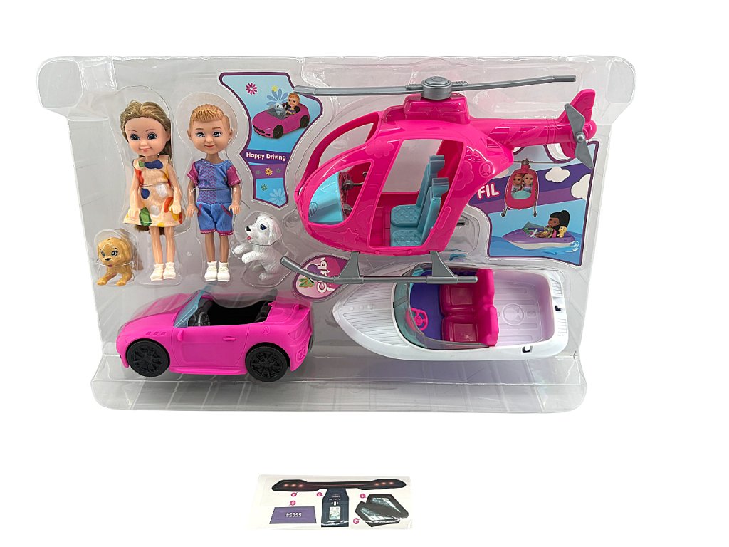 Mini punčki Leo in Nini z avtom, ladjo, helikopterjem in psički
