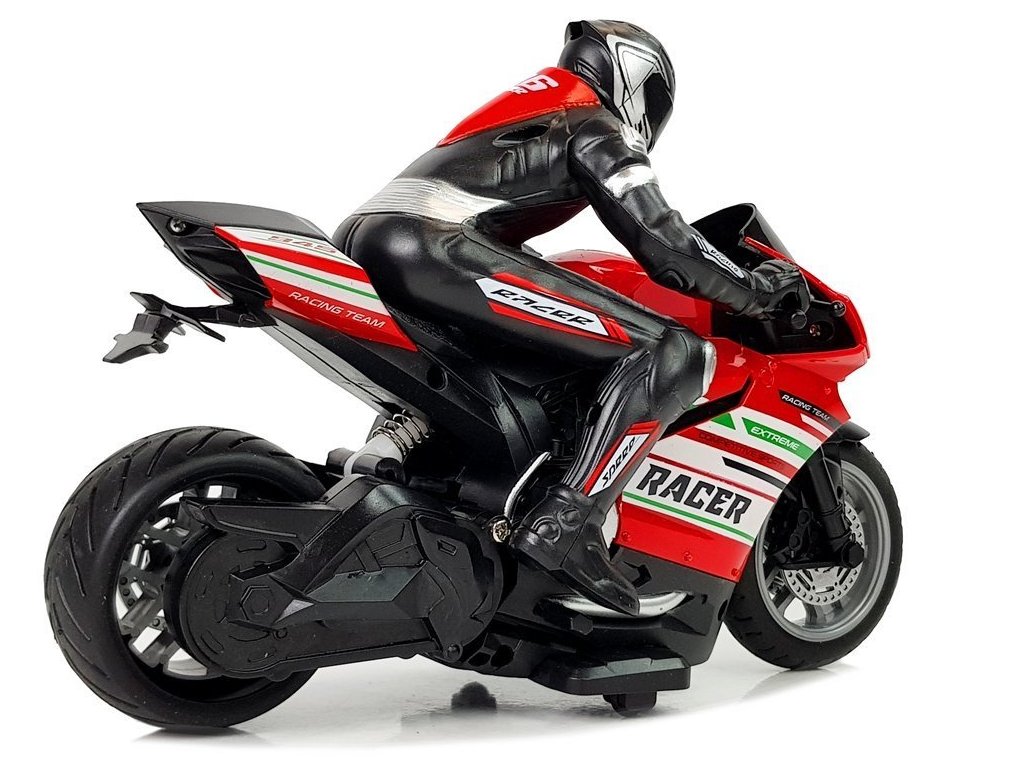 Hitre motorne kolesa so odlična izbira za ljubitelje motorizacije in ekstremne vožnje. Daljinski upravljalnik ima udoben ročaj in je brezžičen. Oddaja frekvenco 2,4GHz, kar omogoča dirkanje v večji skupini brez medsebojnih motenj. Upravljate ga lahko naprej, nazaj in vstran.