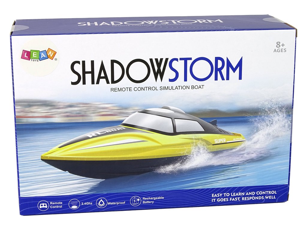 Motorni čoln na daljinsko vodenje ima posebno zasnovo, ki preprečuje vdor vode v notranjost. Je okreten, hiter in zanesljiv. Daljinsko vodenje je udobno in se odlično prilega v roko. Deluje na frekvenci 2,4 GHz, ki ne povzroča motenj pri upravljanju dveh vozil.