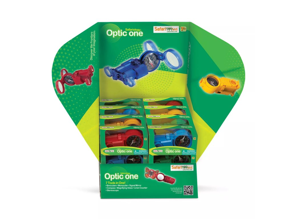 Vključuje na primer povečevalna stekla (dve velikosti), daljnogled, kompas, ogledalo in povečevalno ogledalo; naprava ponuja skupno sedem funkcij. Zasnovan je bil tako, da omogoča spoznavanje in učenje na zabaven in nenasilen način neposredno na kraju samem, med izleti in sprehodi.
