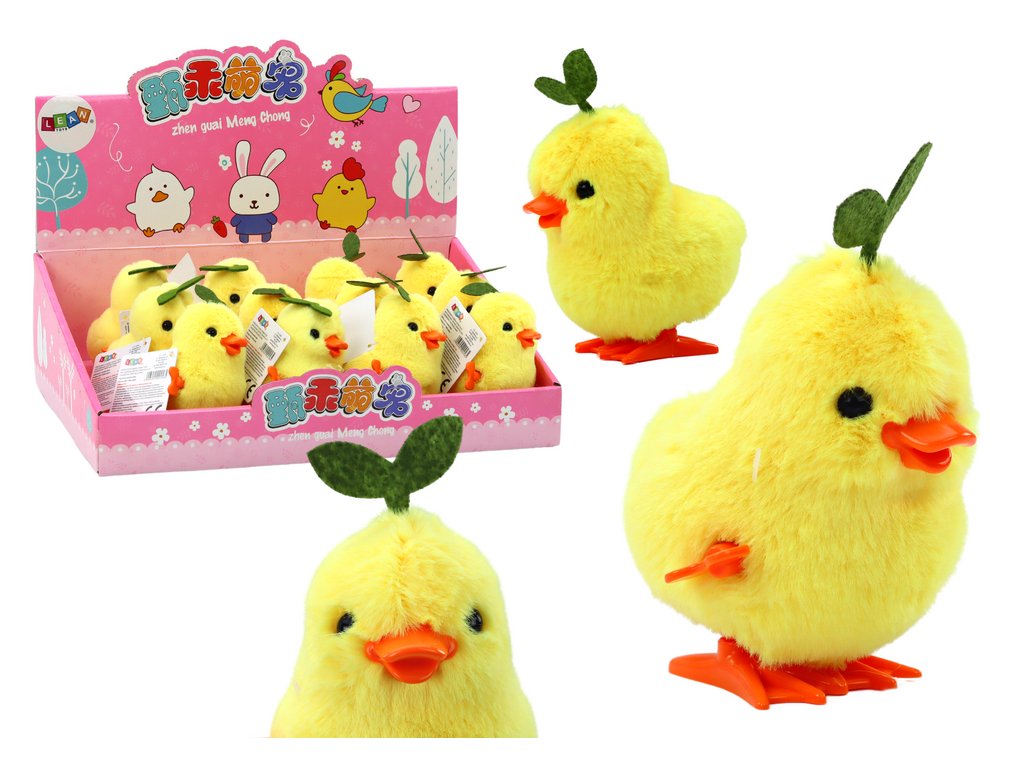 Na vrhu glave piščeta se nahajajo zeleni listi, ki mu dodajajo dodatno čarobnost in izgledajo kot slikovit ptiček med cvetlicami. Ko igračo navijete, začne pišče poskakovati, kar bo zagotovo risalo nasmehe na obraze otrok. Njegovi gibi so polni energije in veselja, kar iz njega naredi idealnega spremljevalca za zabavo in smeh.