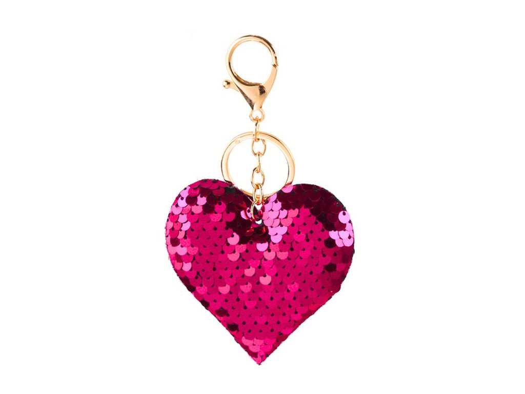 Obesek v obliki srca z dvobarvnimi bleščicami je eleganten in stilno dovršen dodatek. Narejen v obliki srca, obesek je okrašen s temno roza bleščicami, ki mu dajejo eleganten in sijoč videz.