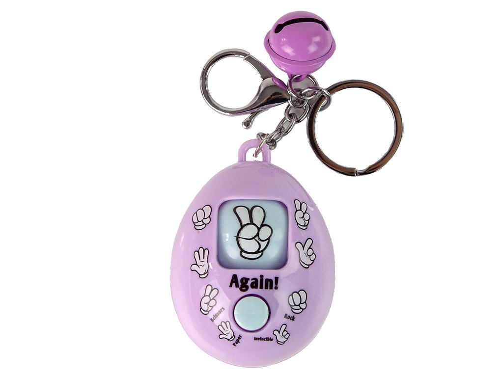 Obesek za ključe vsebuje priljubljeno igro "kamen, škarje, papir", ki jo lahko igrate s svojimi vrstniki. Izberite, kdo bo izpolnjeval naloge. Gre za ikonično in brezčasno igro. S pritiskom na sredinski gumb vam vrtljiv sredinski del pokaže ustrezno tačko s simbolom.