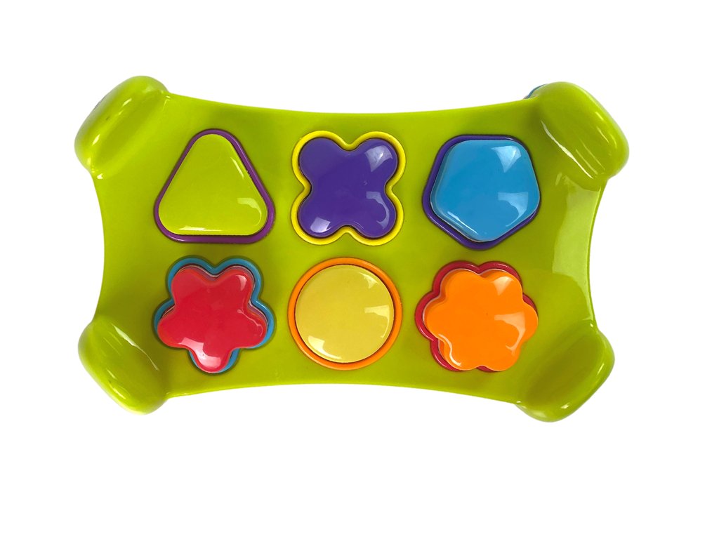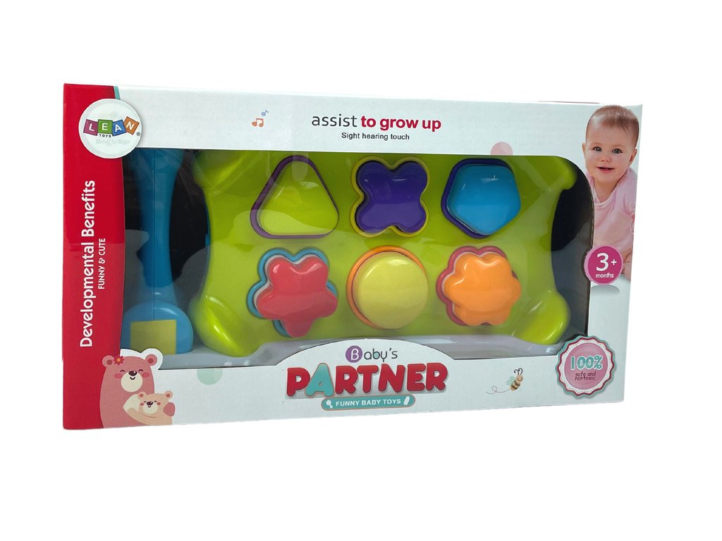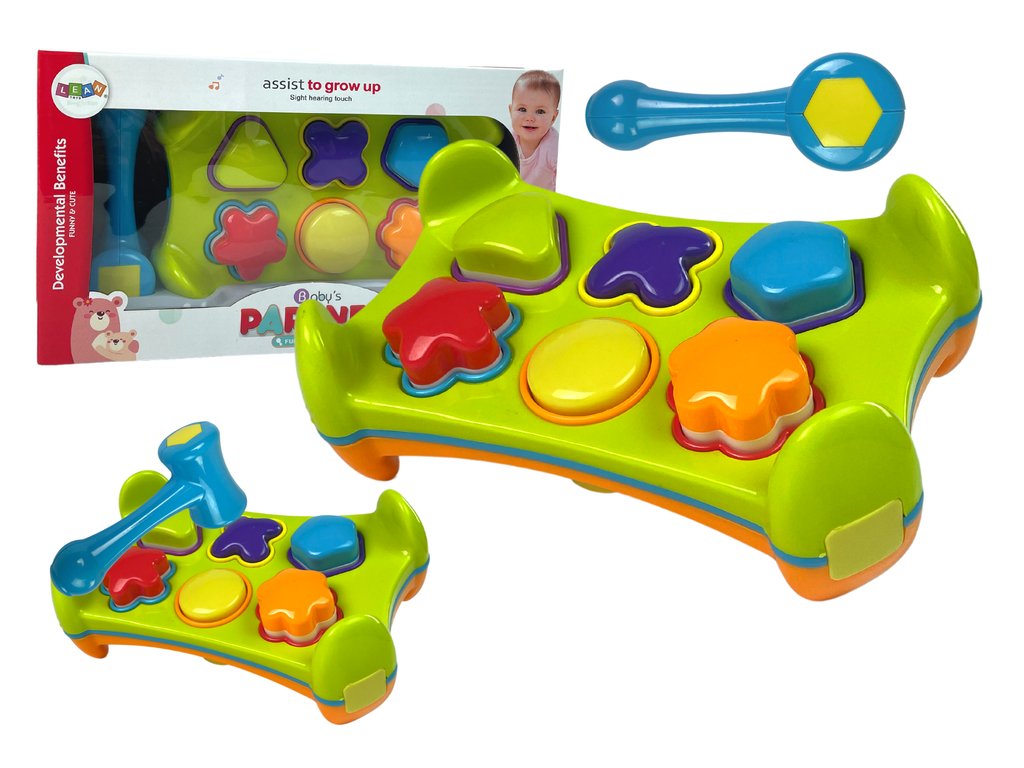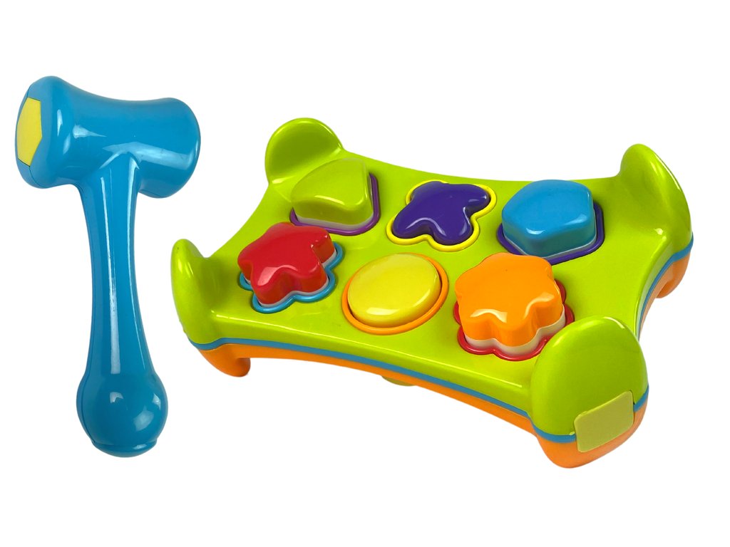 Na vsaki steni je sortirnik z odprtinami v obliki geometrijskih likov, ki jih je treba le uskladiti z ustreznimi odprtinami, kar pa zahteva veliko koncentracije vašega otroka. S pomočjo kladiva potisnete like na drugo stran.