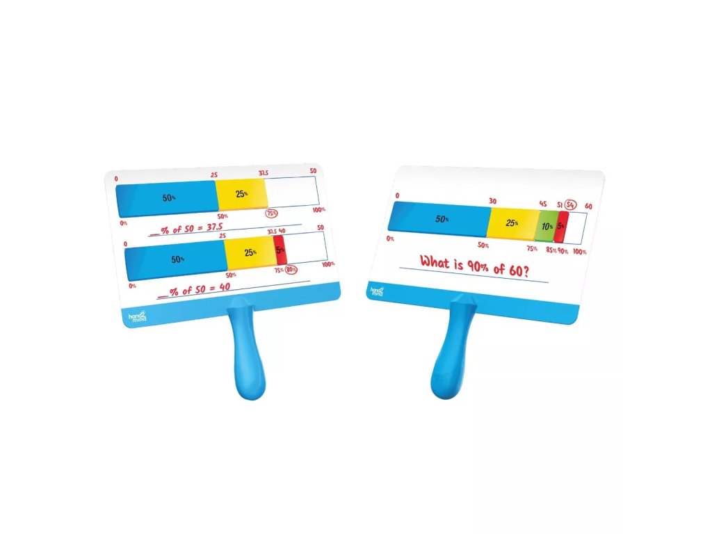 Študenti sestavljajo delčke v razponu od 5 % do 50 %, da prikažejo dani odstotni delež. Zapisi v tabelah za beleženje se nato uporabljajo za reševanje vrst nalog, kot so: