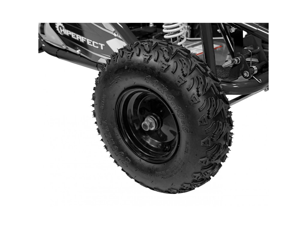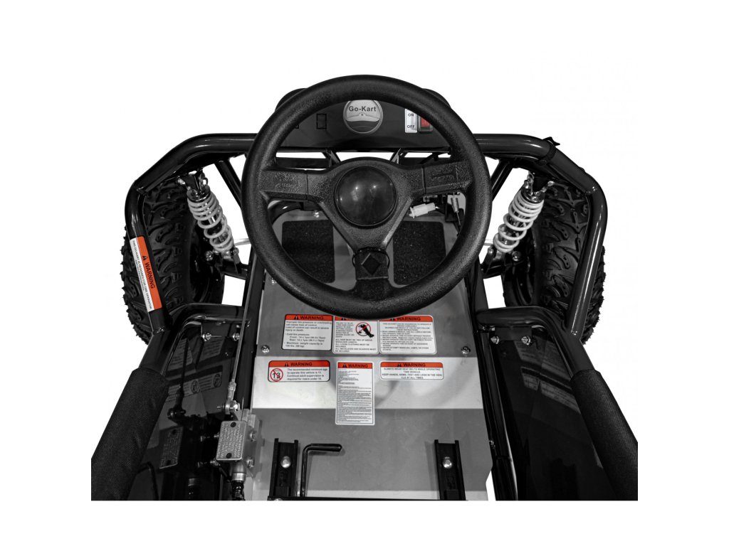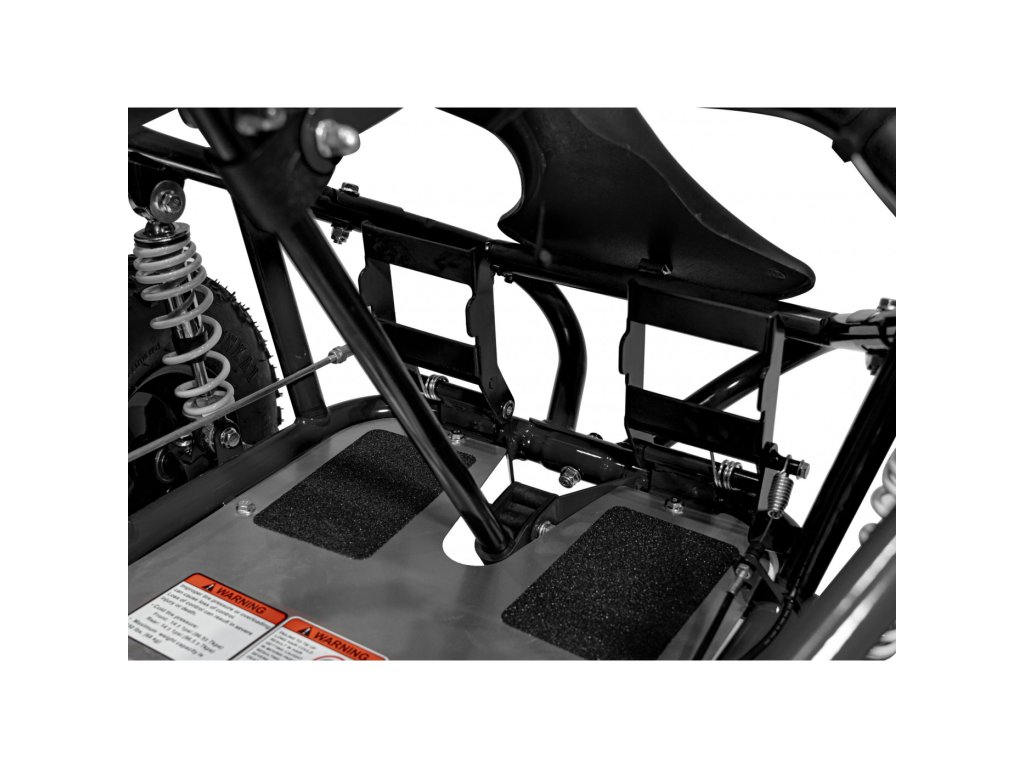 Med opremo spada nastavljiv vodoodporen sedež z varnostnimi pasovi in kolutnimi zavorami. Motokara omogoča vožnjo naprej in ima nosilnost do 68 kg.
