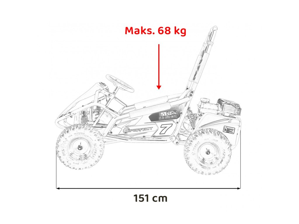 - Dimenzije vozila: 151 x 90 x 110 cm (d x š x v)