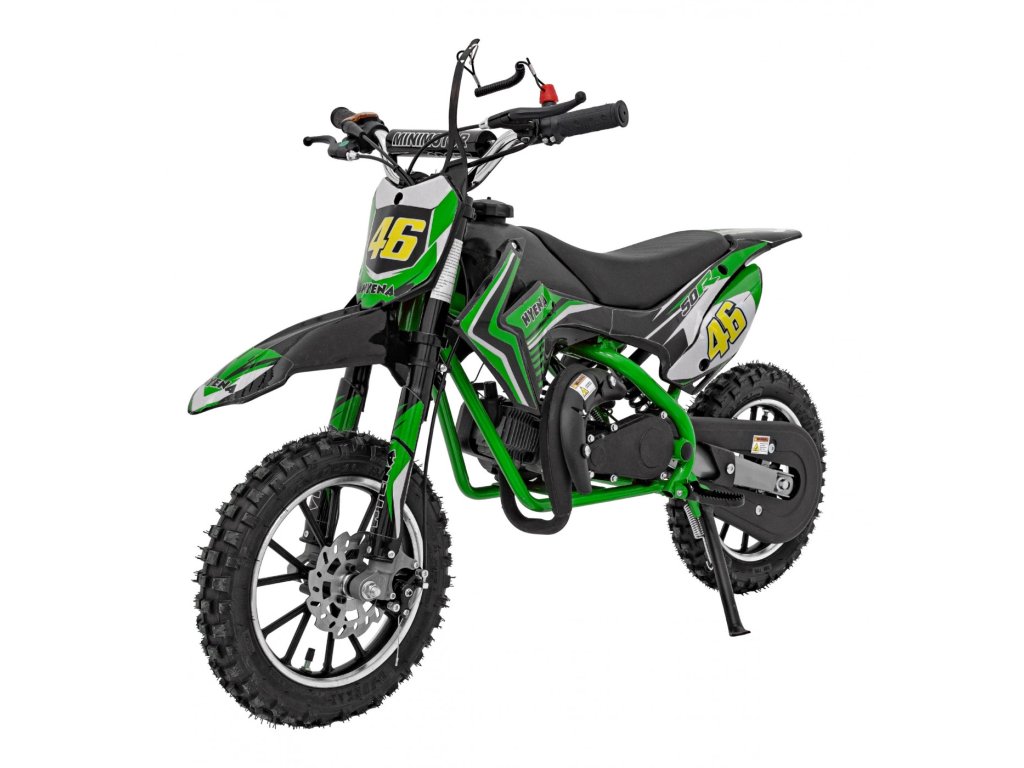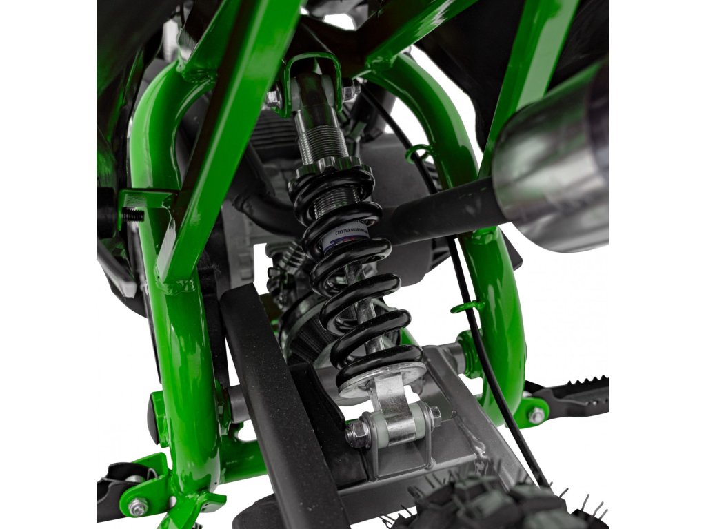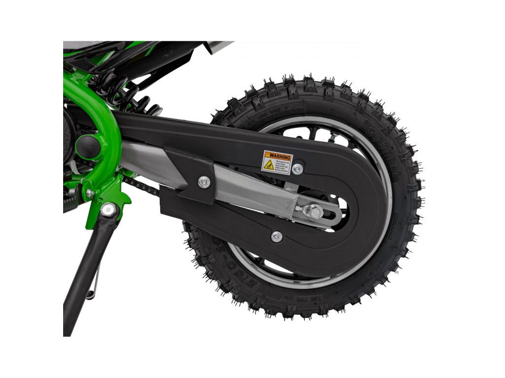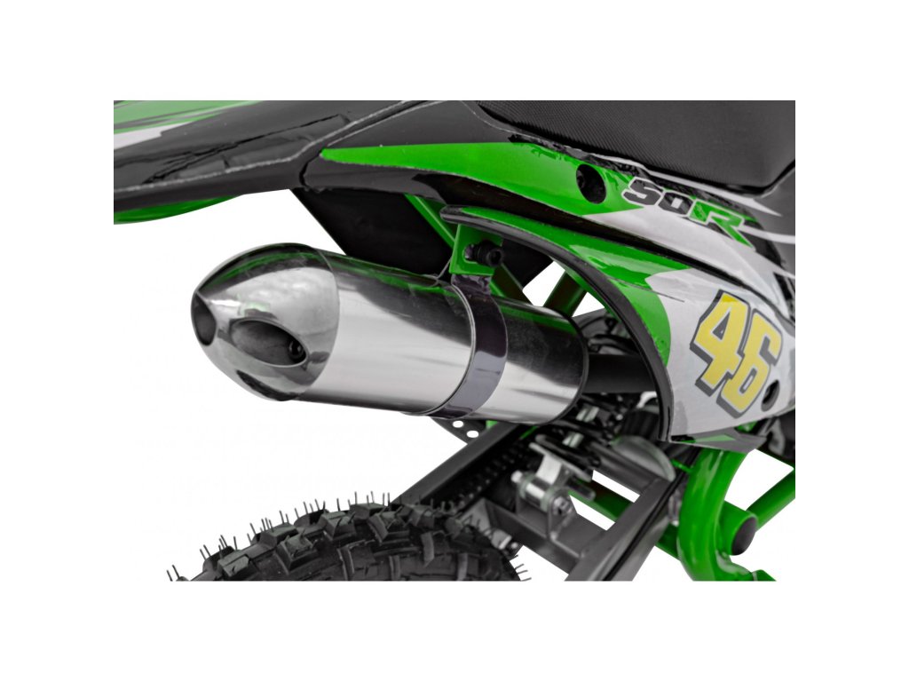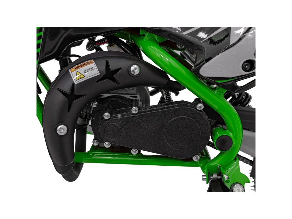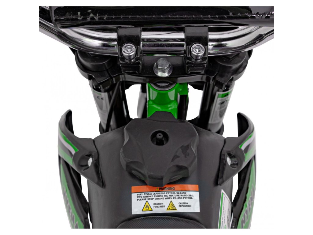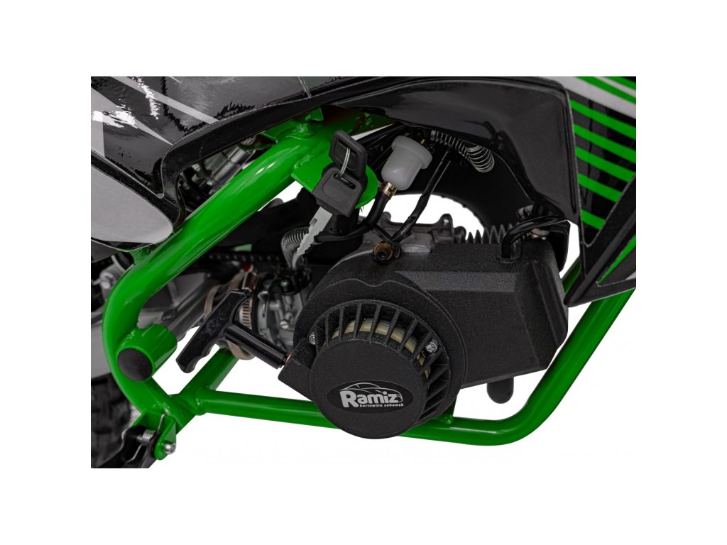 Otroška bencinska motorka RENEGADE 50R zelen je opremljena z enovaljnim dvitaktnim motorjem in širokimi napihljivimi kolesi. Vozilo ima rezervoar s prostornino 2 litra.