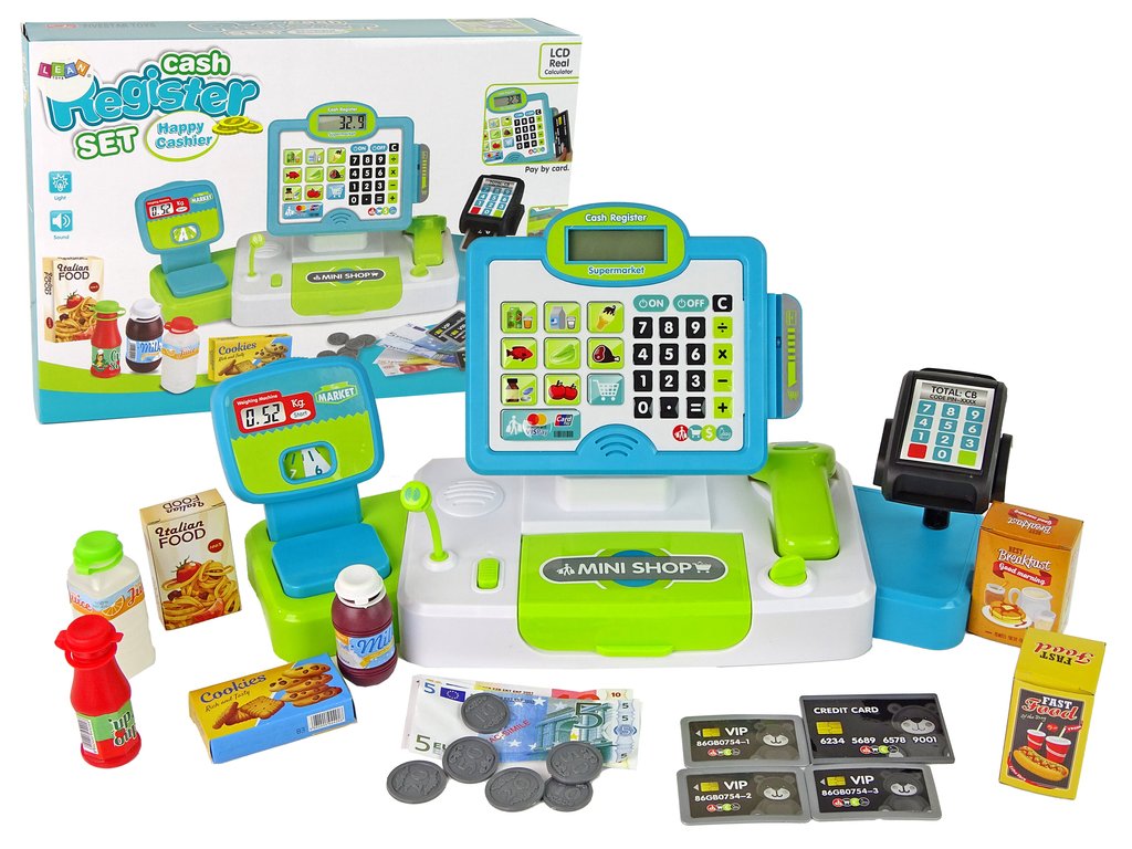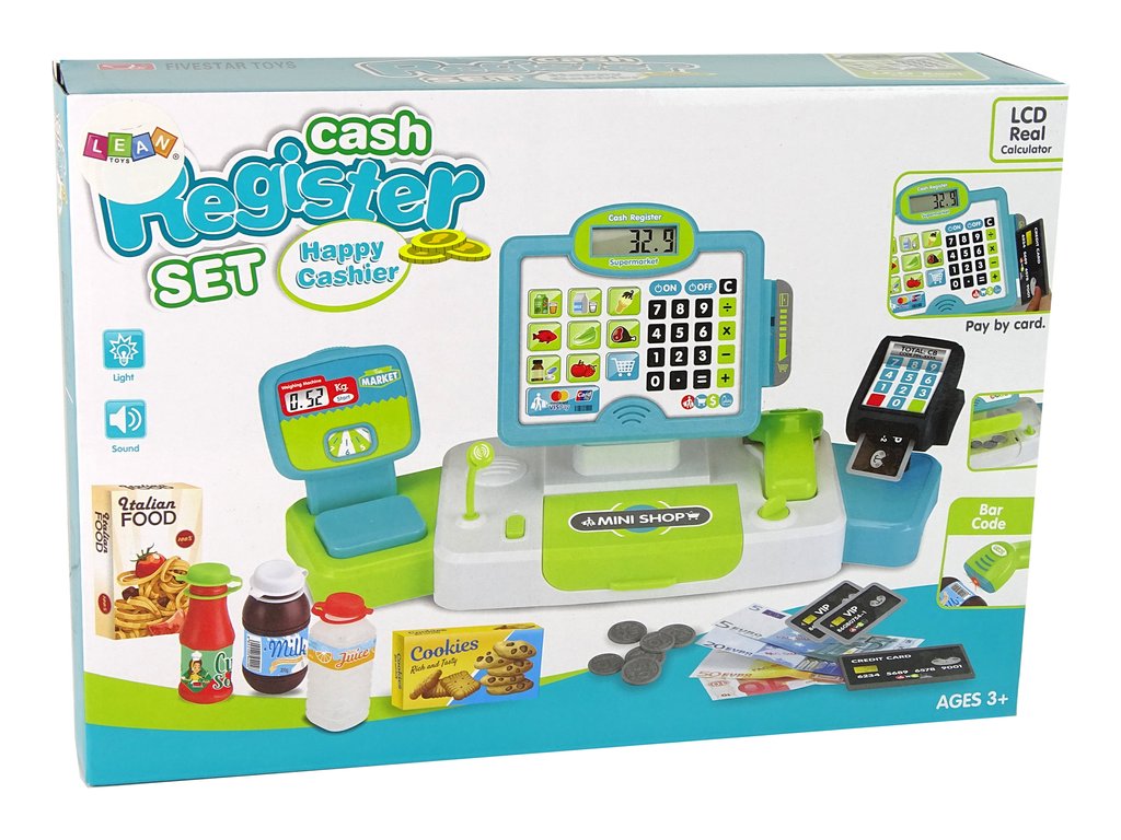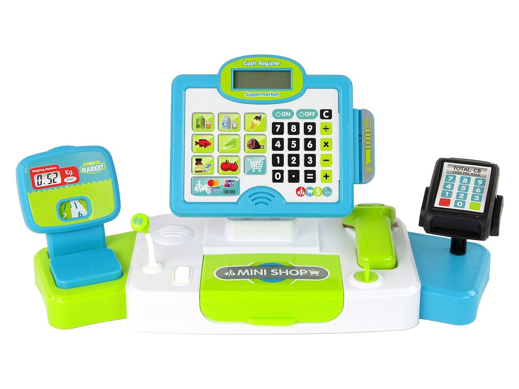 Blagajna ima premične dele, ki dodajajo interaktivni značaj, kar omogoča prikaz scenarijev iz prave trgovine. Ima tudi zvočne učinke, s katerimi je igra še bolj zanimiva. Za aktiviranje mikrofona je treba samo premakniti zeleni gumb.