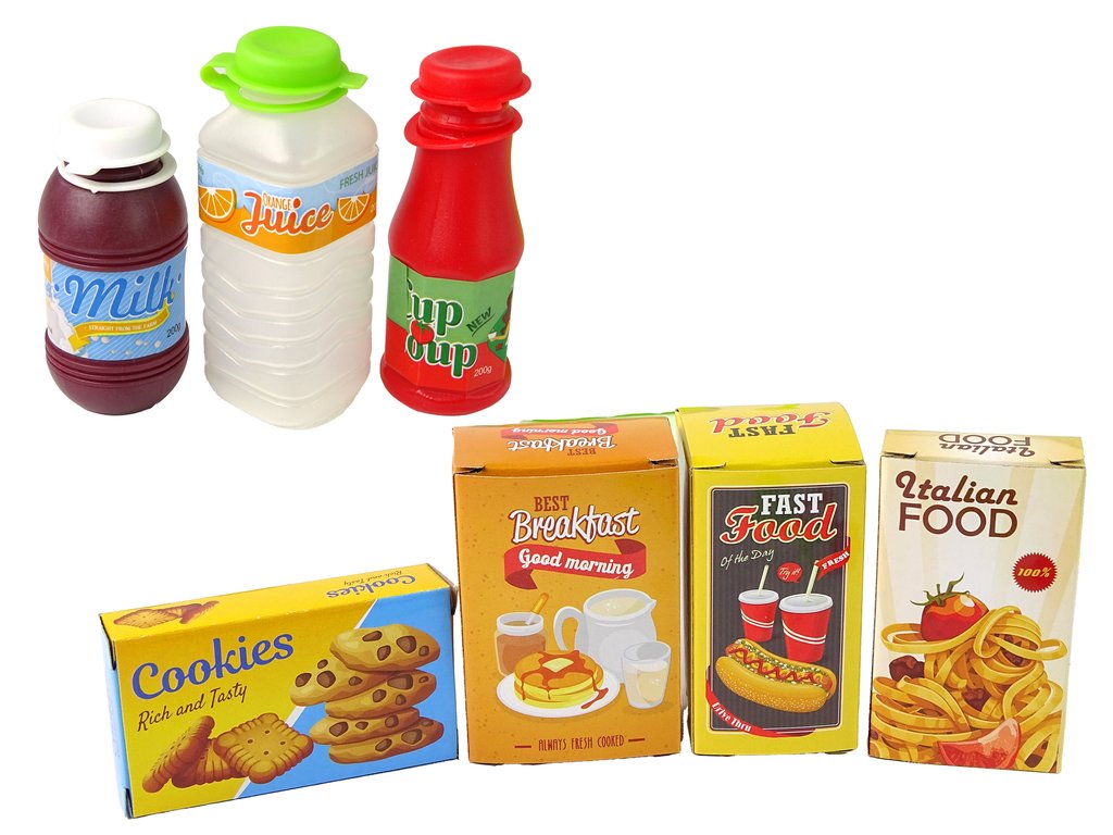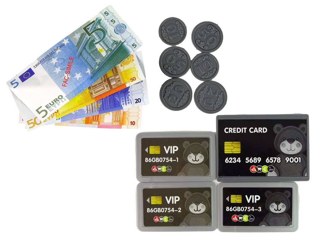Poleg tega vključuje različne izdelke, denar in kartice, kar omogoča simulacijo nakupov in razvijanje matematičnih veščin.