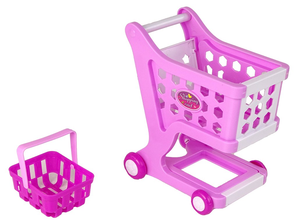 Otroška blagajna z nakupovalnim vozičkom in dodatki roza