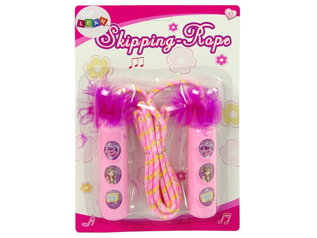 Ta roza model otroške kolebnice je opremljen s plastičnimi ročaji, ki omogočajo udoben oprijem in se odlično prilegajo otroški roki. Na ročajih so kolesca s slikami princese in še dve barvni nalepki.
