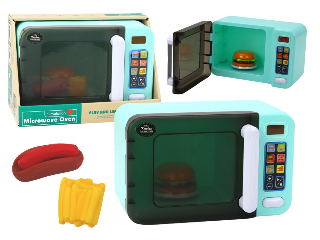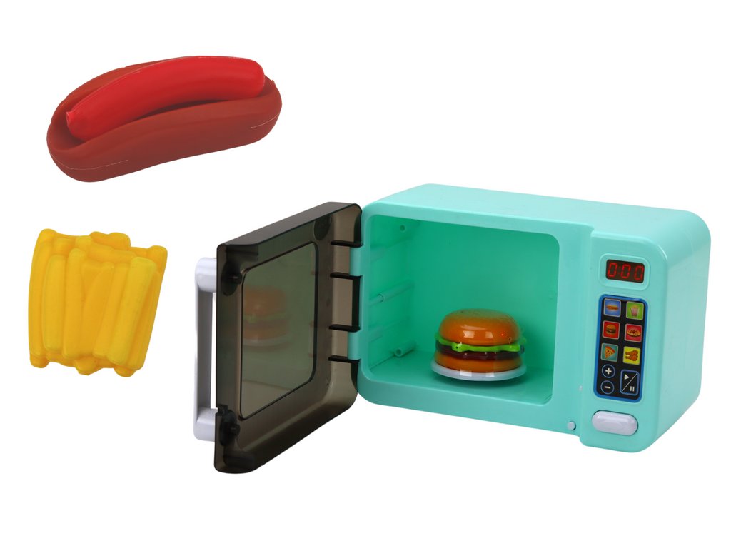 Otrok lahko celo odpre vrata, da položi svojo jed za segrevanje, in po preteku časa vzame pripravljeno hrano. Sestavni del kompleta so tudi živila za igro - hamburger, pomfrit in hot dog - za še bolj resnično zabavo. Ta mikrovalovna pečica ni samo vir zabave, ampak tudi orodje za učenje in razvoj otrokove domišljije. Med igro lahko vaš malček vadi socialne spretnosti s pretvarjanjem, da kuha za svoje prijatelje ali družino, hkrati pa se uči o zdravi prehrani in vsakodnevnih domačih opravilih.