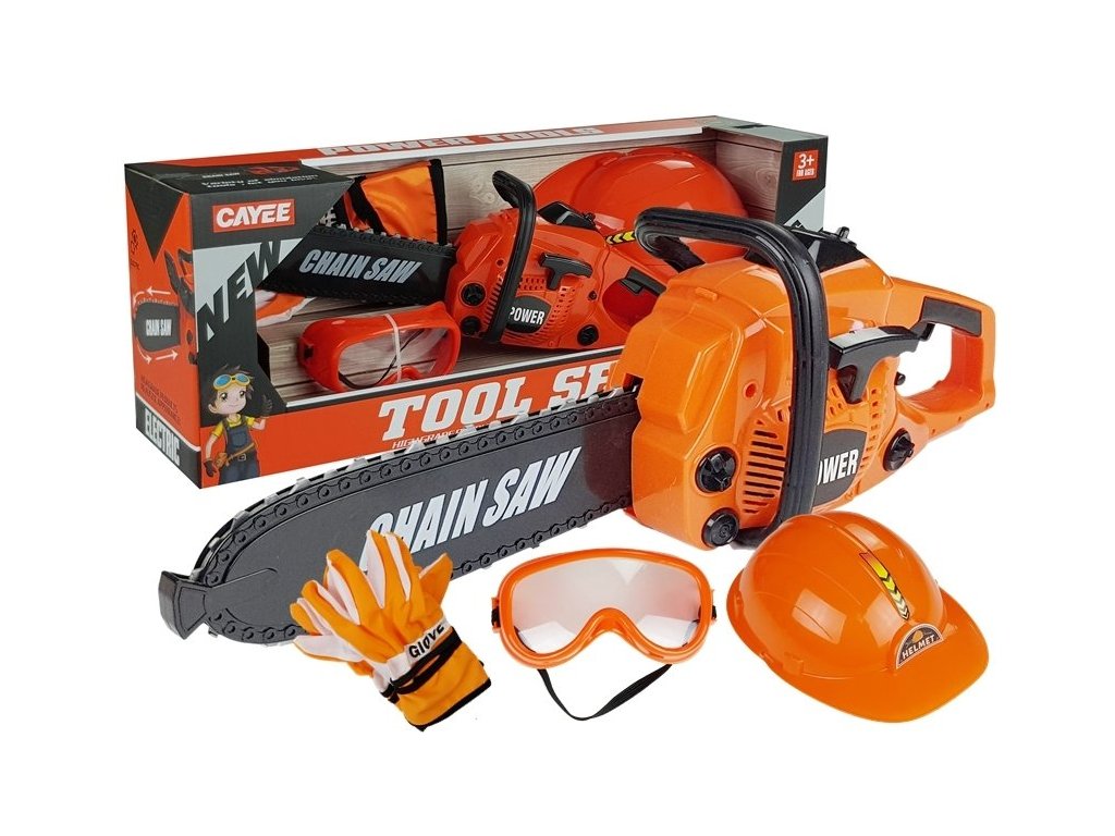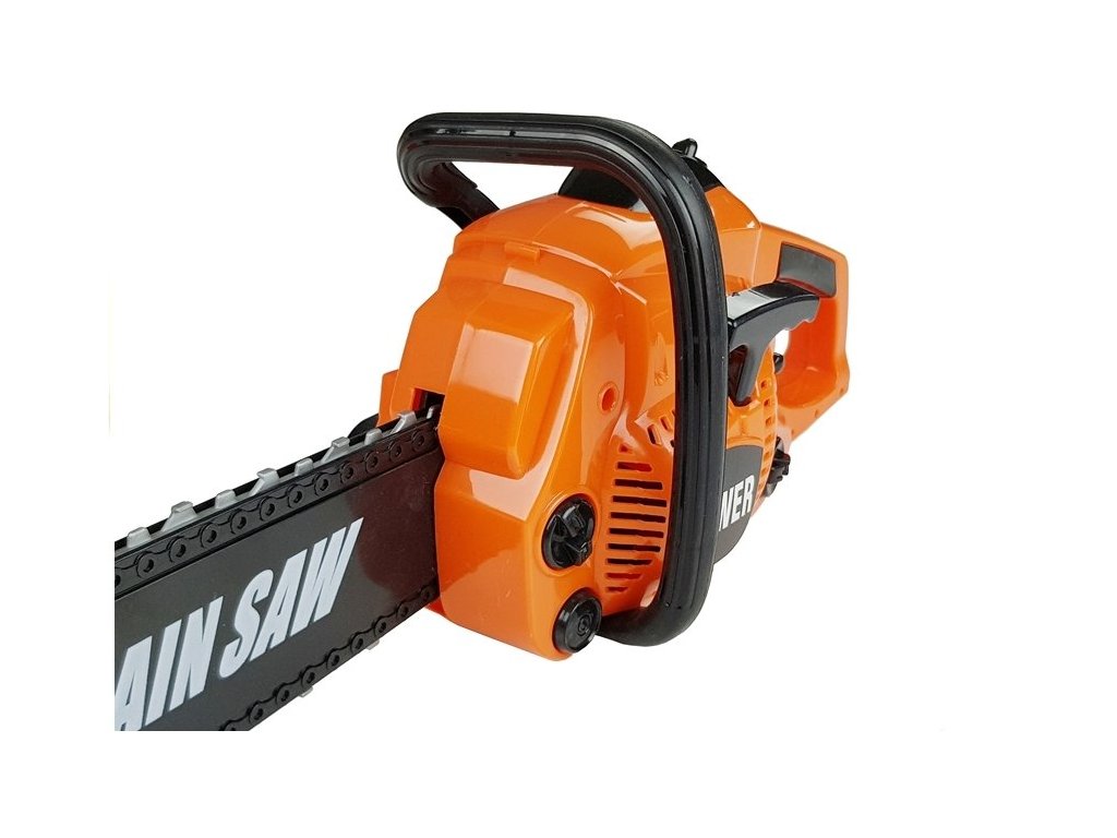 Otroci radi opazujejo svoje očete in dedke. S to otroško motorno žago lahko mali mojster sodeluje z njimi. Za zagon žage je dovolj, da nežno potegne startni mehanizem na levi strani igrače in nato pritisne gumb na ročaju, ki sproži premik rezila. Z realistično žago bo vsaka igra pridobila nov pomen, mali mojster pa se bo z veseljem in navdušenjem učil novih stvari.