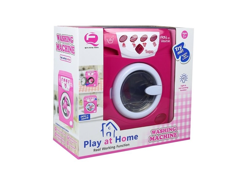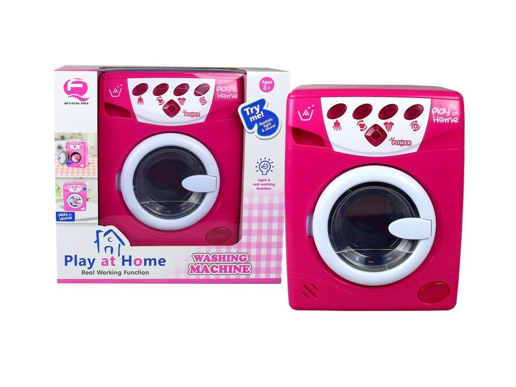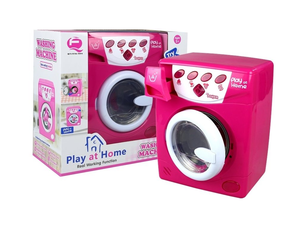 Prikupen, zabaven, realističen in skrbno izdelan pralni stroj za male gospodinje. Sedaj se bo vsako dekle lahko posvetilo oblačilom svojih najljubših punčk in plišastih medvedkov. Preprosto vstavite perilo v pralni stroj, izberite ustrezen program (pranje, izpiranje, centrifugiranje) in že je pripravljeno! Pralni stroj ima svetlobne in zvočne učinke, ki bodo zagotovo popestrili zabavo.