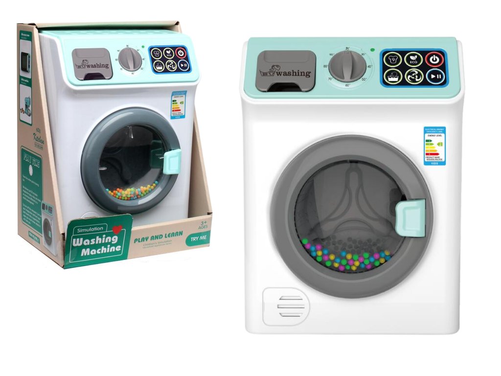 Pralni stroj oddaja zvoke vode in simulira celoten proces pranja. Gumb na pralnem stroju se med delovanjem vrti in časovno določa pranje. Pranje je končano, ko se kazalec vrne na 0.