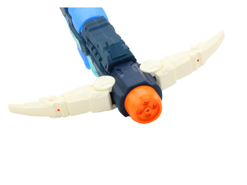Pištola ima tudi dovolj visok tlak, da zagotovi doseg strela do 8 metrov! To prinaša precejšnjo prednost na bojišču in povečuje možnosti za zmago. Poleg tega zložljivi ročaji pištole omogočajo streljanje vode iz treh različnih kotov, kar omogoča hiter odziv in presenečenje nasprotnika.