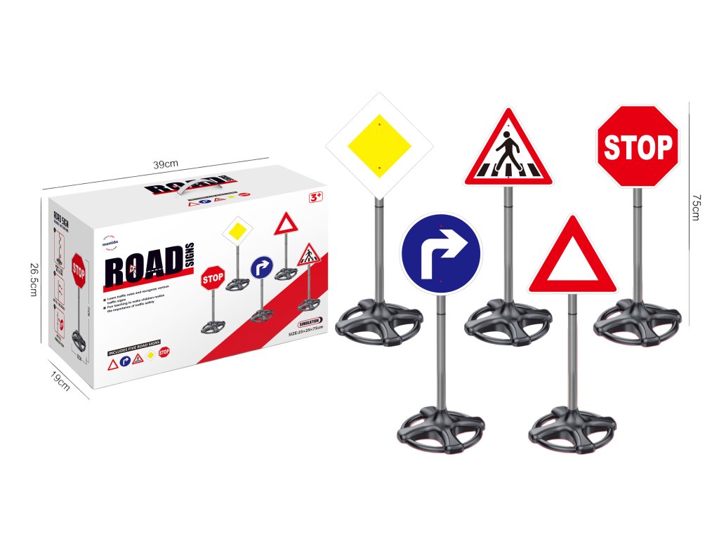 Učite otroke prometnim pravilom na igriv način! Ta komplet otroških prometnih znakov vključuje 5 realističnih znakov, visokih 75 cm, ki so kot nalašč za igro doma, na vrtu in na otroških prometnih poligonih.