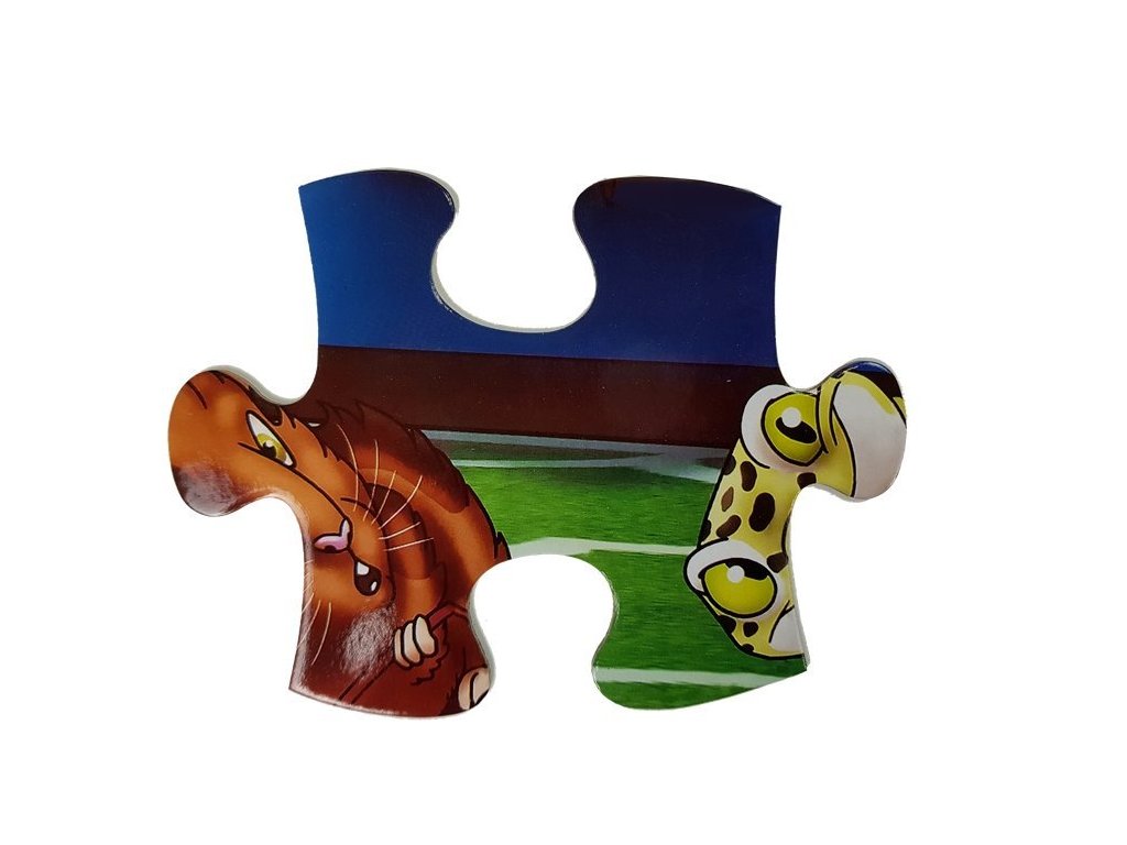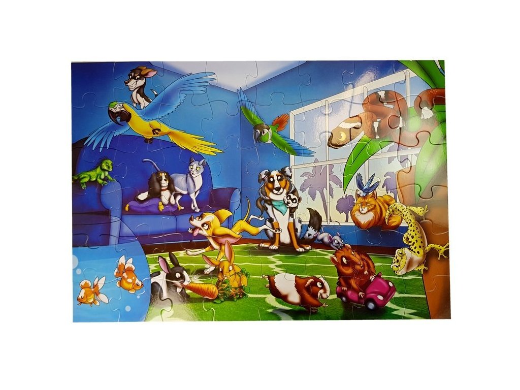 Idealna igrača za popestritev prostega časa in nadaljnji razvoj osnovnih veščin vašega otroka. Na sliki, ki jo je treba sestaviti, lahko vaš otrok vidi, kako srečno je življenje domačih ljubljenčkov, spoznava psa, mačko ali papagaja. Med procesom sestavljanja otrok vadi natančnost in ročne spretnosti, dela na domišljiji, izboljšuje spomin in koncentracijo. Lepa in živa barva bo zagotovo pritegnila vsakega otroka.