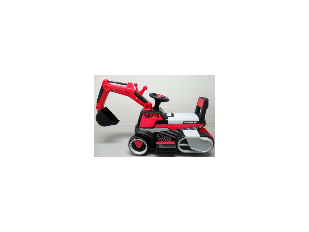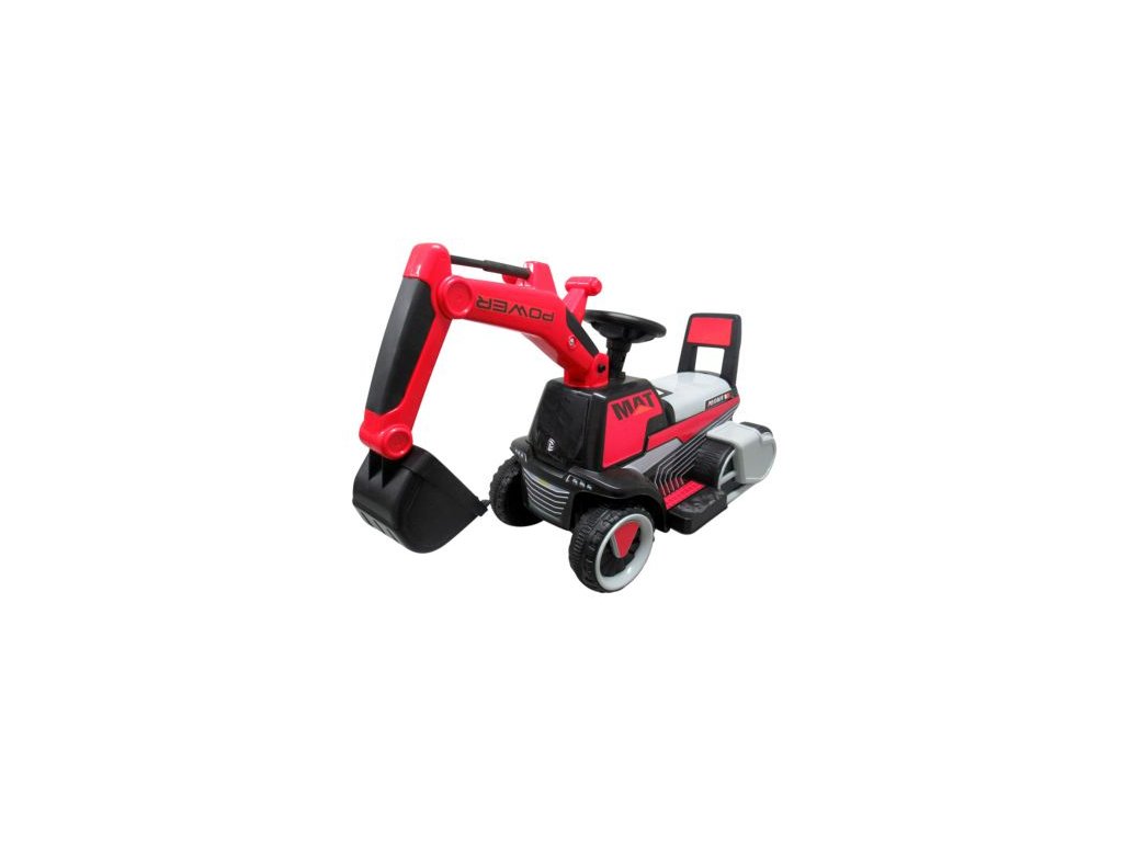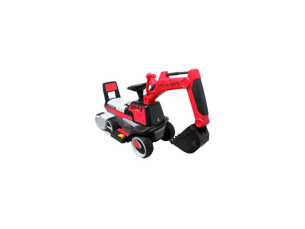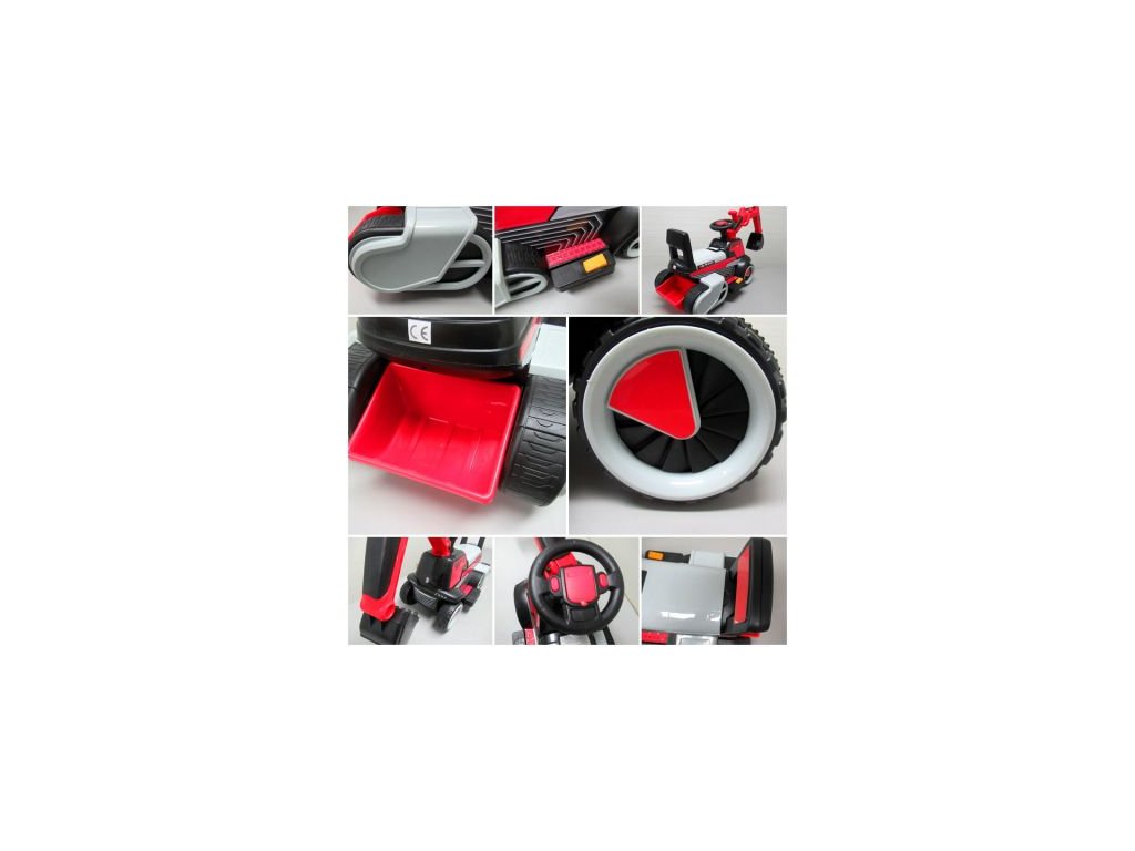Otroški električni bager prihaja na kolesih, ki so tiha in med vožnjo ne povzročajo hrupa. Otrok se usede na udoben sedež in vožnjo zagotovo popestri glasba, ki jo lahko posluša z volana. Bager je opremljen s sprednjimi LED lučmi in njegova nosilnost je 25 kg.