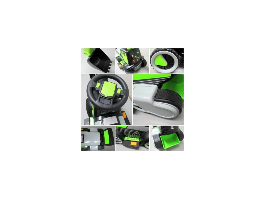 Otroški bager na akumulator C3 zelen prihaja na kolesih, ki so tiha in med vožnjo ne povzročajo hrupa. Otrok bo sedel v udoben sedež in vožnjo bo zagotovo še bolj popestrila glasba, ki jo je mogoče poslušati iz volana vozila. Bager je opremljen s sprednjimi LED lučmi in njegova nosilnost je 25 kg.