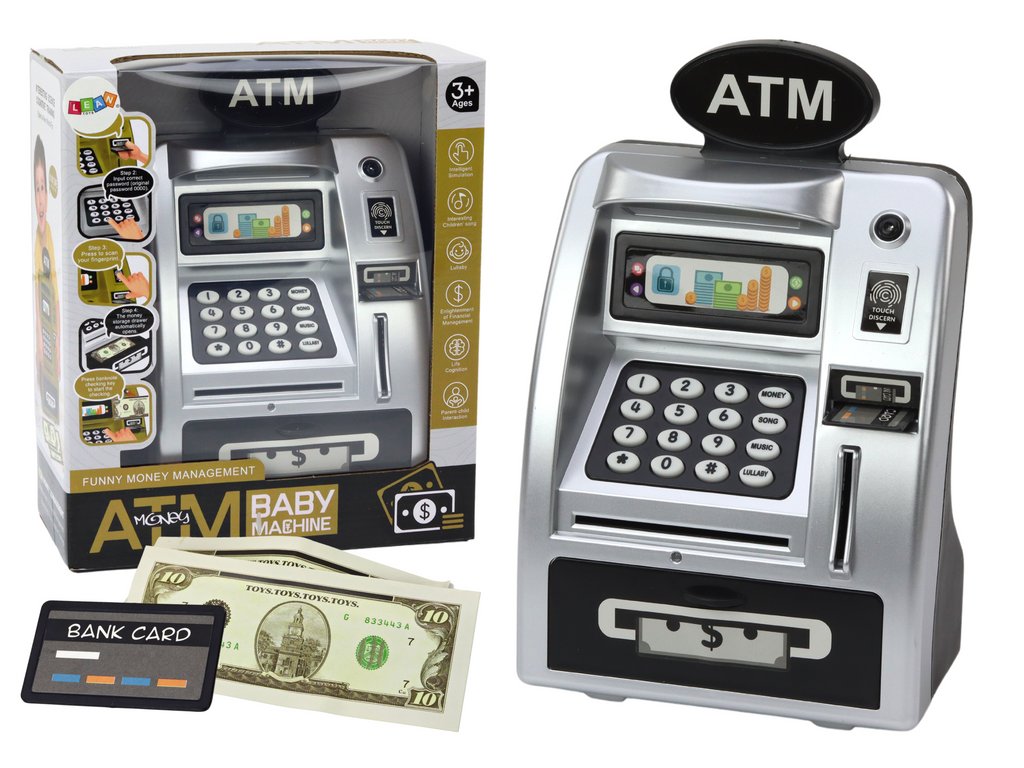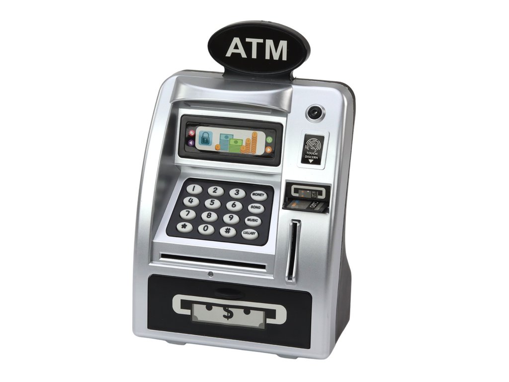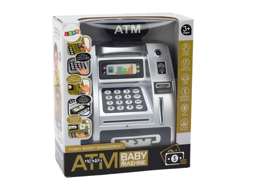 Otroški bančni avtomat hranilnik učenje varčevanja srebrno-črna