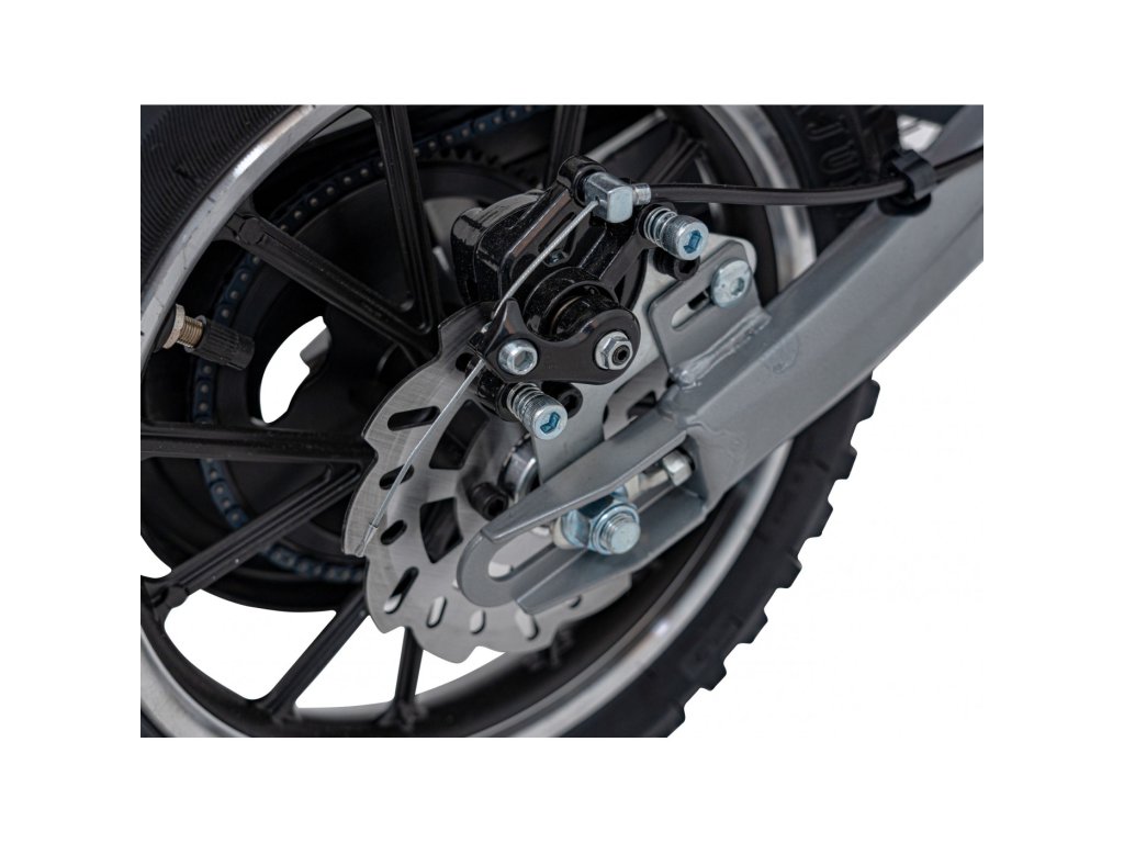 Med opremo spadajo vodoodporen sedež in kolutne zavore. Motor omogoča vožnjo naprej, njegova nosilnost pa je do 70 kg.