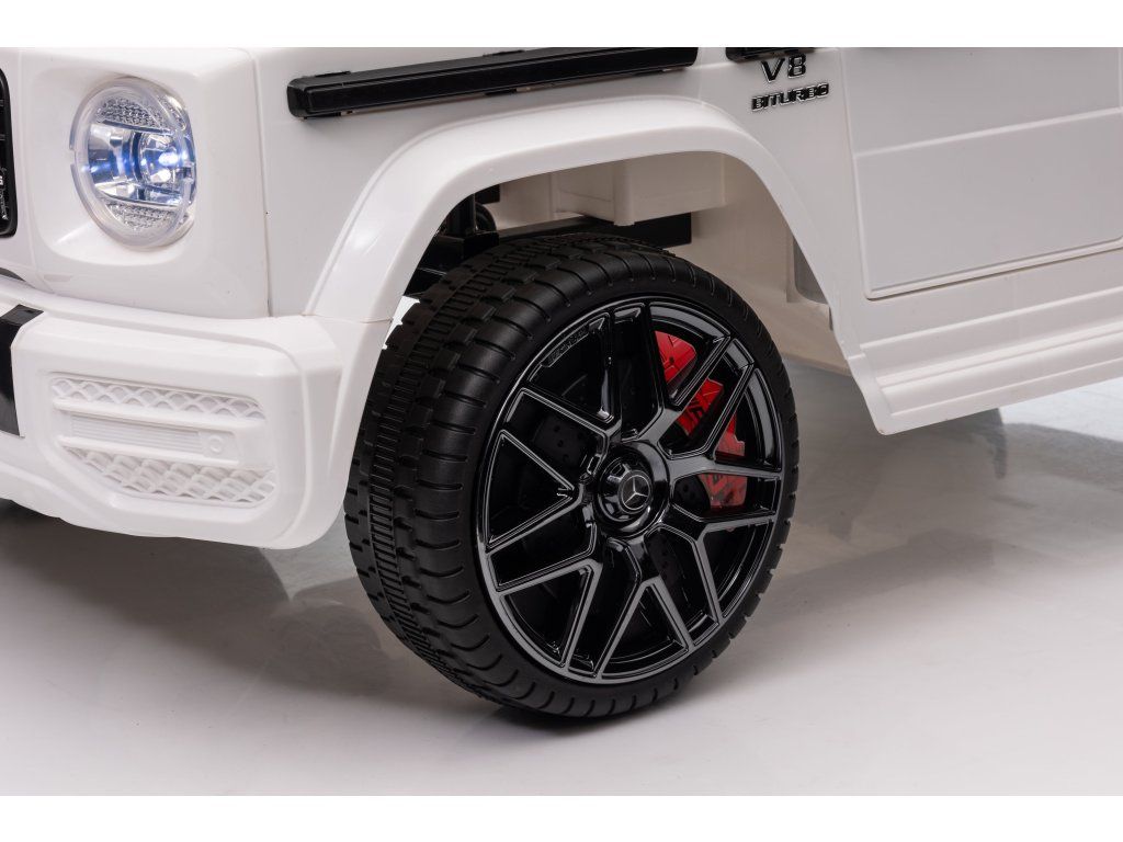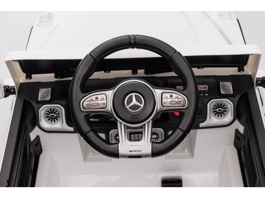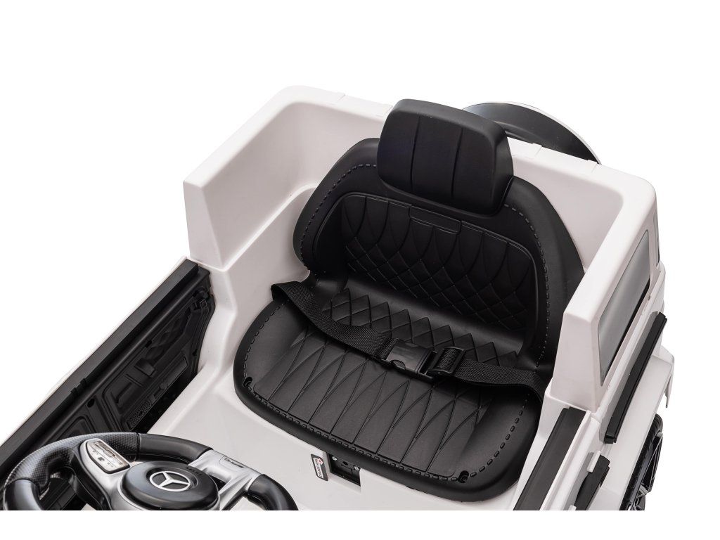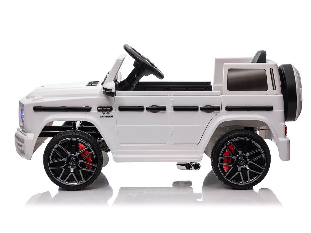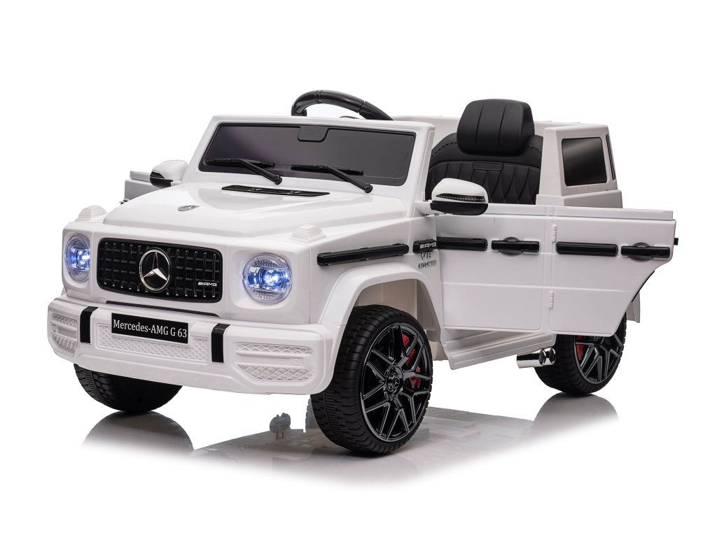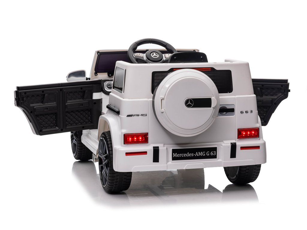 Otroški električni avtomobilček Mercedes Benz G63 cabrio bel je idealna izbira za ljubitelje majhnih luksuznih avtomobilov. Z baterijo 12 V 4,5 Ah in krmilnikom 2,4 GHz prinaša varnost in nadzor na vsako vožnjo.