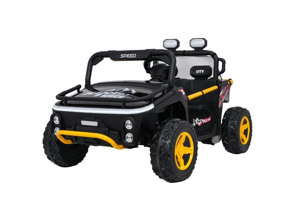 Zmogljivi otroški električni otroški voziček UTV SPEED je idealna izbira za male voznike, ki želijo doživeti pravo terensko vožnjo. Z dvema močnima motorjema, veliko 24 V baterijo in vzmetenjem udobno premaguje različne terene. Dvosedežna zasnova omogoča vožnjo v dvoje, medtem ko imajo starši popoln nadzor zahvaljujoč daljinskemu upravljanju. Bogata oprema vključuje LED luči, avdio plošče in varnostne elemente, ki zagotavljajo zabavo in varnost.