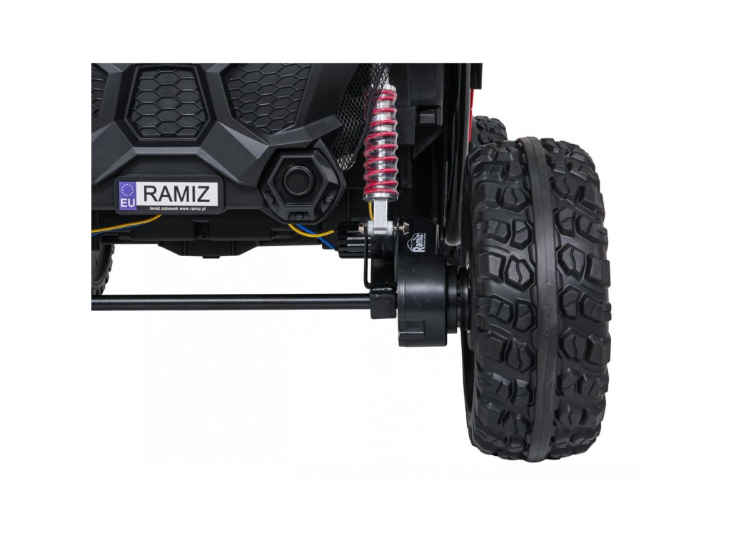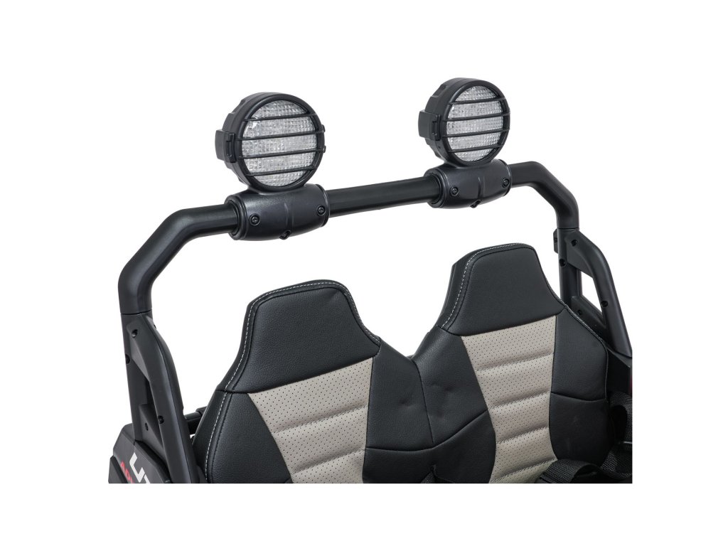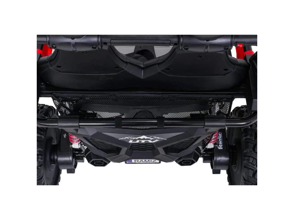 Štirikolesni pogonski voziček SPEEDY 4x4 je idealna izbira za male pustolovce. Štirje zmogljivi motorji s skupno močjo 800 W, mehka kolesa iz pene EVA in zadnji amortizerji zagotavljajo gladko vožnjo tudi po zahtevnejšem terenu. Avto je opremljen z varnostnimi pasovi, LED lučmi in praktičnim daljinskim upravljalnikom s funkcijo STOP.