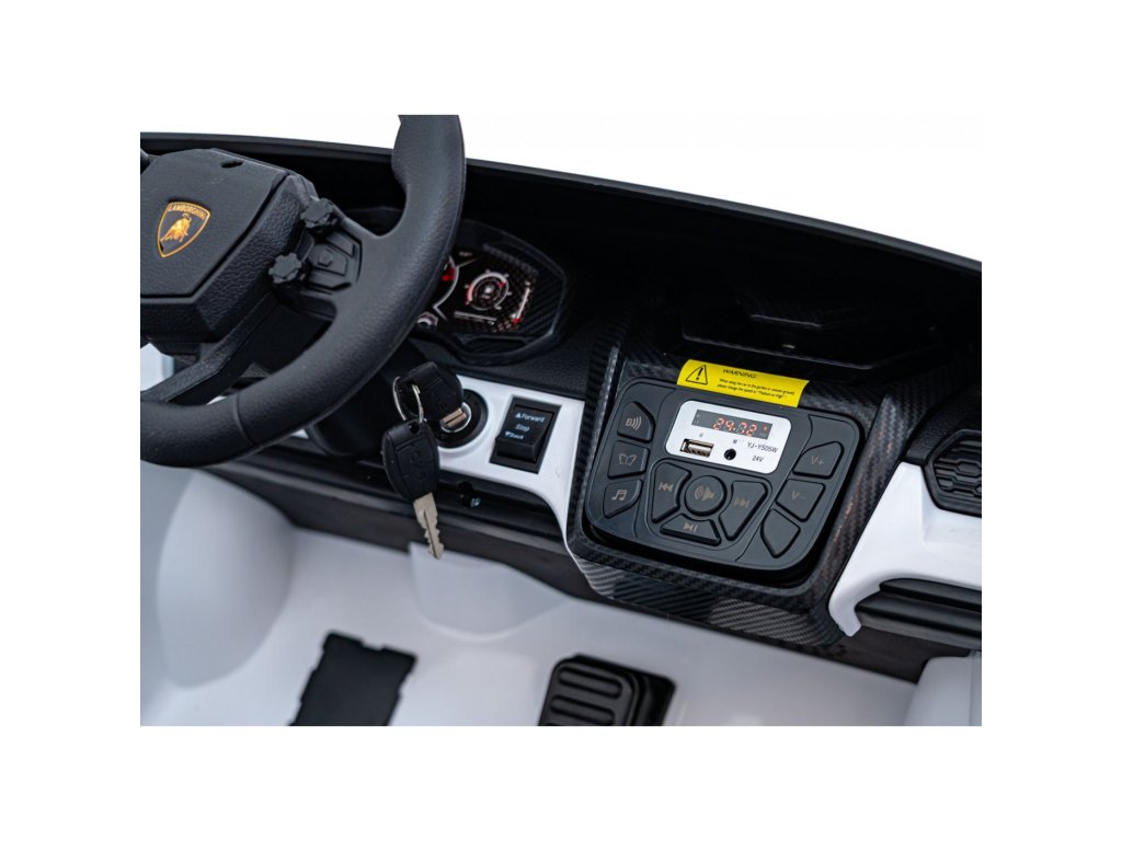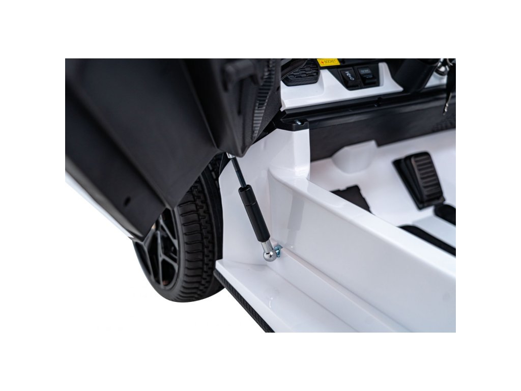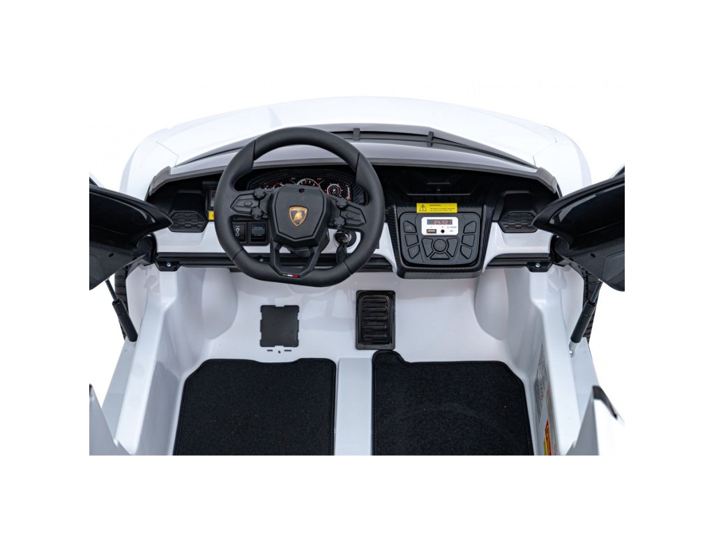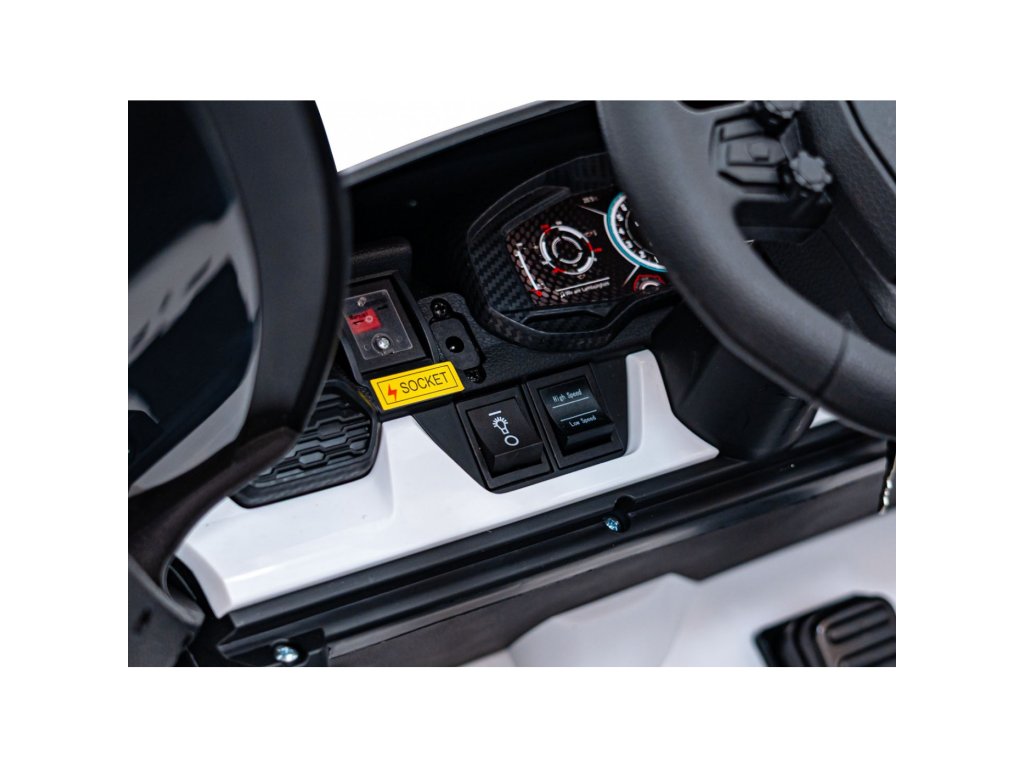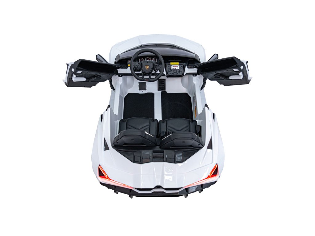 Električni avtomobilček za otroke Lamborghini Revuelto združuje vrhunsko zmogljivost, udobje in slog, zvest originalu. Štirje zmogljivi 200 W motorji, velika kolesa iz pene EVA in zadnje vzmetenje zagotavljajo gladko vožnjo po ravnih površinah in nežnem terenu. Dvojni sedež, prevlečen z eko usnjem , z varnostnimi pasovi, LED osvetlitvijo in odpiralnimi vrati dajejo avtomobilčku realističen videz in varnost.