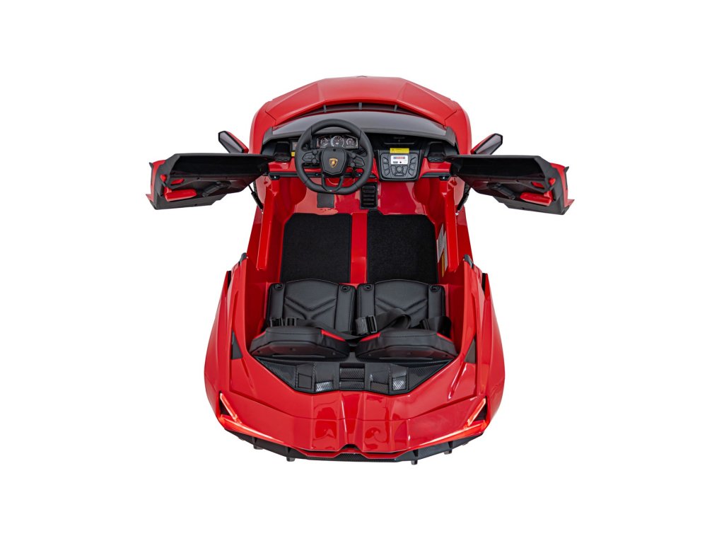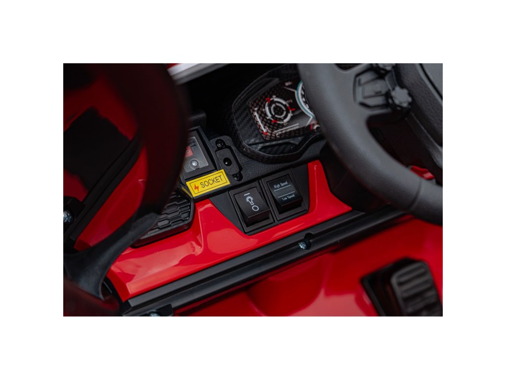 Električni avtomobilček za otroke Lamborghini Revuelto združuje vrhunsko zmogljivost, udobje in slog, zvest originalu. Štirje zmogljivi 200 W motorji, velika kolesa iz pene EVA in zadnje vzmetenje zagotavljajo gladko vožnjo po ravnih površinah in nežnem terenu. Dvojni sedež, prevlečen z eko usnjem , z varnostnimi pasovi, LED osvetlitvijo in odpiralnimi vrati dajejo avtomobilčku realističen videz in varnost.