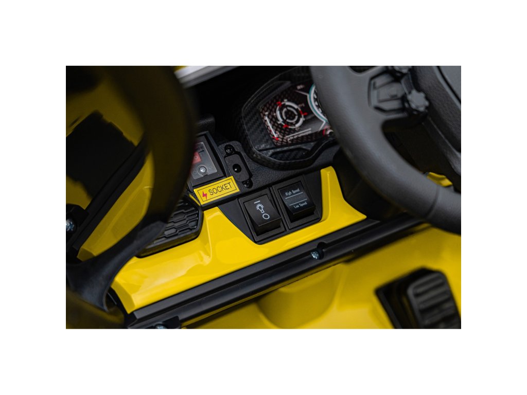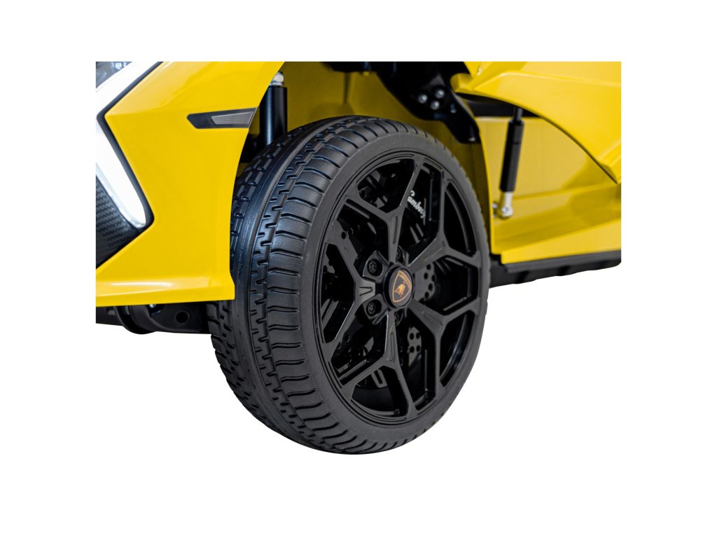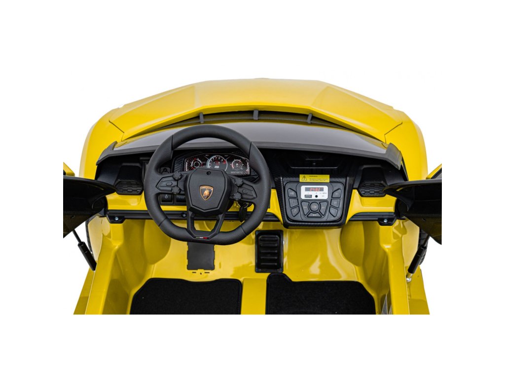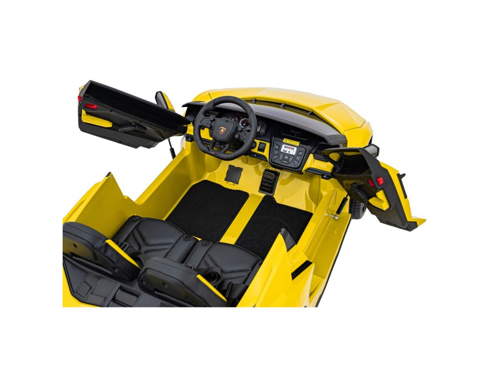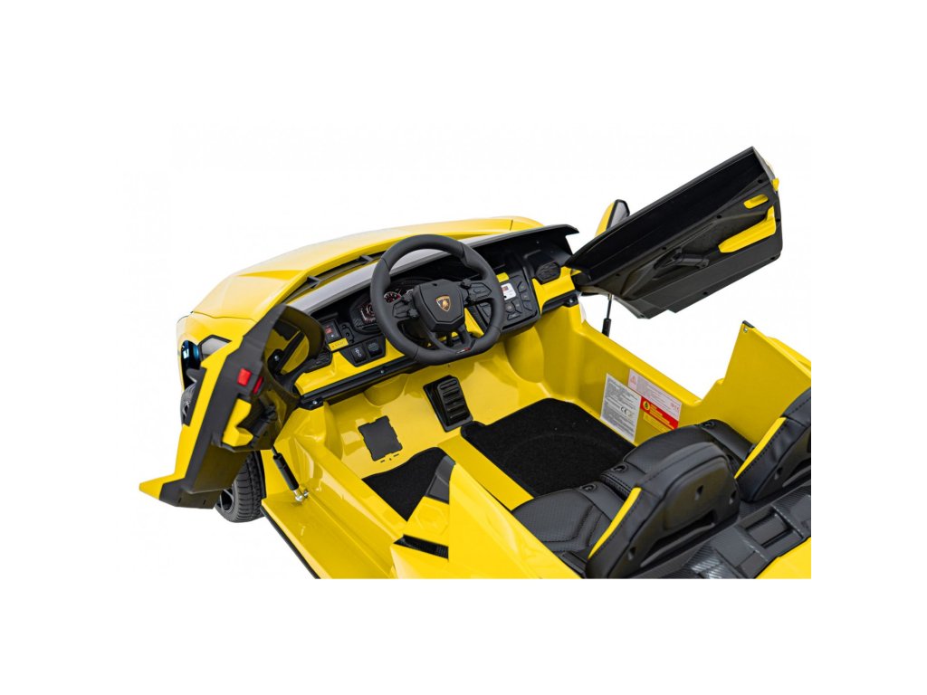 Električni avtomobilček za otroke Lamborghini Revuelto združuje vrhunsko zmogljivost, udobje in slog, zvest originalu. Štirje zmogljivi 200 W motorji, velika kolesa iz pene EVA in zadnje vzmetenje zagotavljajo gladko vožnjo po ravnih površinah in nežnem terenu. Dvojni sedež, prevlečen z eko usnjem , z varnostnimi pasovi, LED osvetlitvijo in odpiralnimi vrati dajejo avtomobilčku realističen videz in varnost.