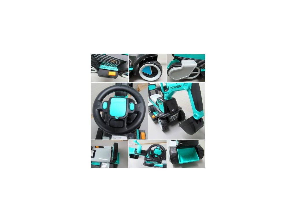 Otroški električni bager C3 moder prihaja na kolesih, ki so tiha in med vožnjo ne povzročajo hrupa. Otrok se usede v udoben stol in vožnjo zagotovo popestri glasba, ki jo je mogoče poslušati z volana vozila. Bager je opremljen s sprednjimi LED lučmi in ima nosilnost 25 kg.