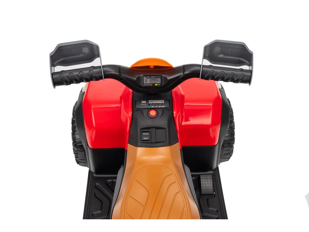 Otroški električni štirikolesnik je opremljen z dvema motorjema s skupno močjo 90 W. Štirikolesnik zlahka obvladuje različne vrste terena, neasfaltirane površine in hribe.