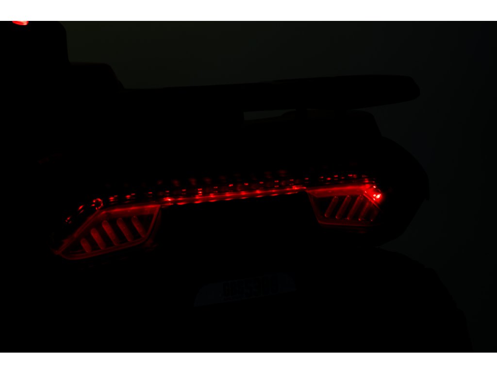 Oprema vključuje glasbeno ploščo z vhodi USB in MP3 . Štirikolesnik ima sprednje in zadnje LED luči , omogoča vožnjo v vse smeri, njegova nosilnost pa je do 30 kg .
