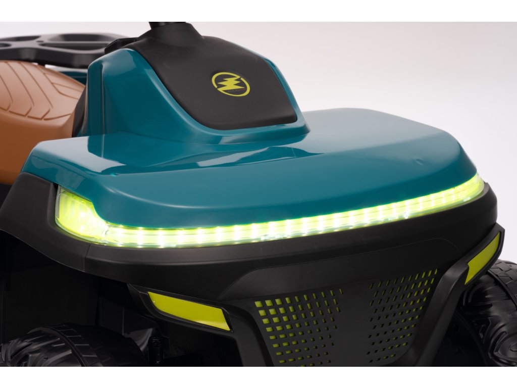 Otroški električni štirikolesnik je opremljen z dvema motorjema s skupno močjo 90 W. Štirikolesnik zlahka obvladuje različne vrste terena, neasfaltirane površine in hribe.