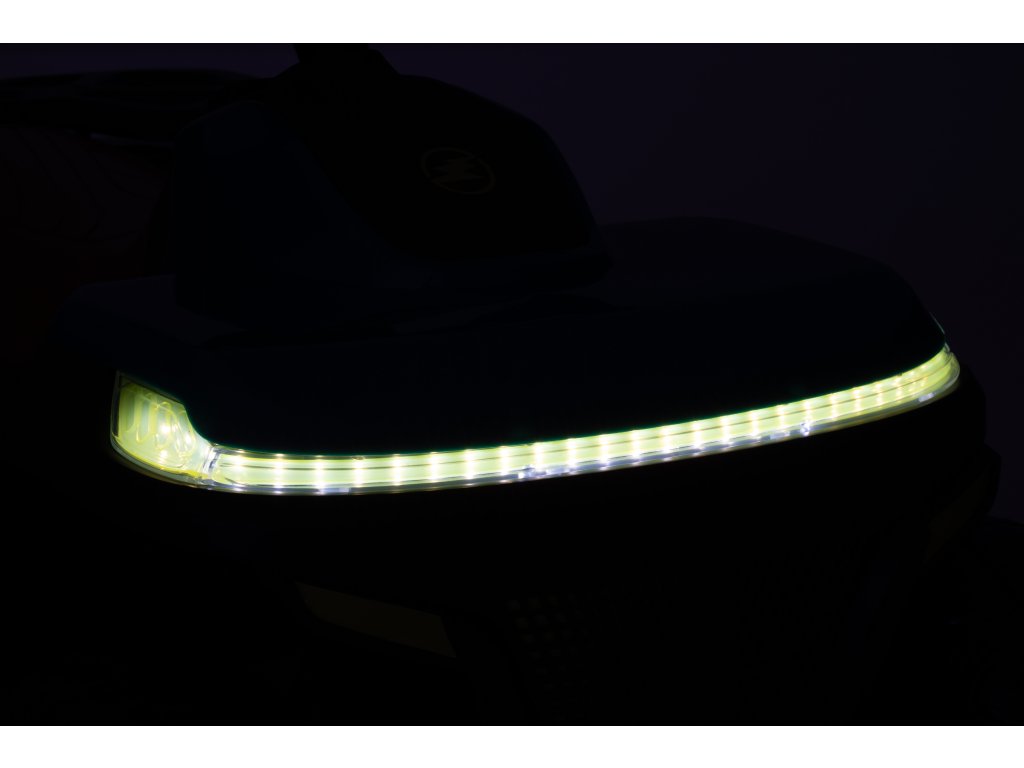 Oprema vključuje glasbeno ploščo z vhodi USB in MP3 . Štirikolesnik ima sprednje in zadnje LED luči , omogoča vožnjo v vse smeri, njegova nosilnost pa je do 30 kg .